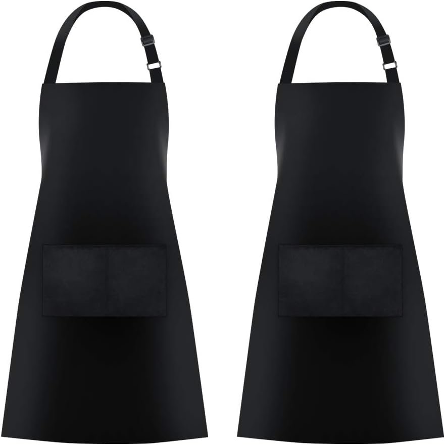Nice look. Bright polyester apron, not easily wrinkle, fit perfectly sizes, It looks good on the body. Adjustable bib, adjustable straps, adjust the size as the body changes, and also with the convenient pockets in the front of the apron.