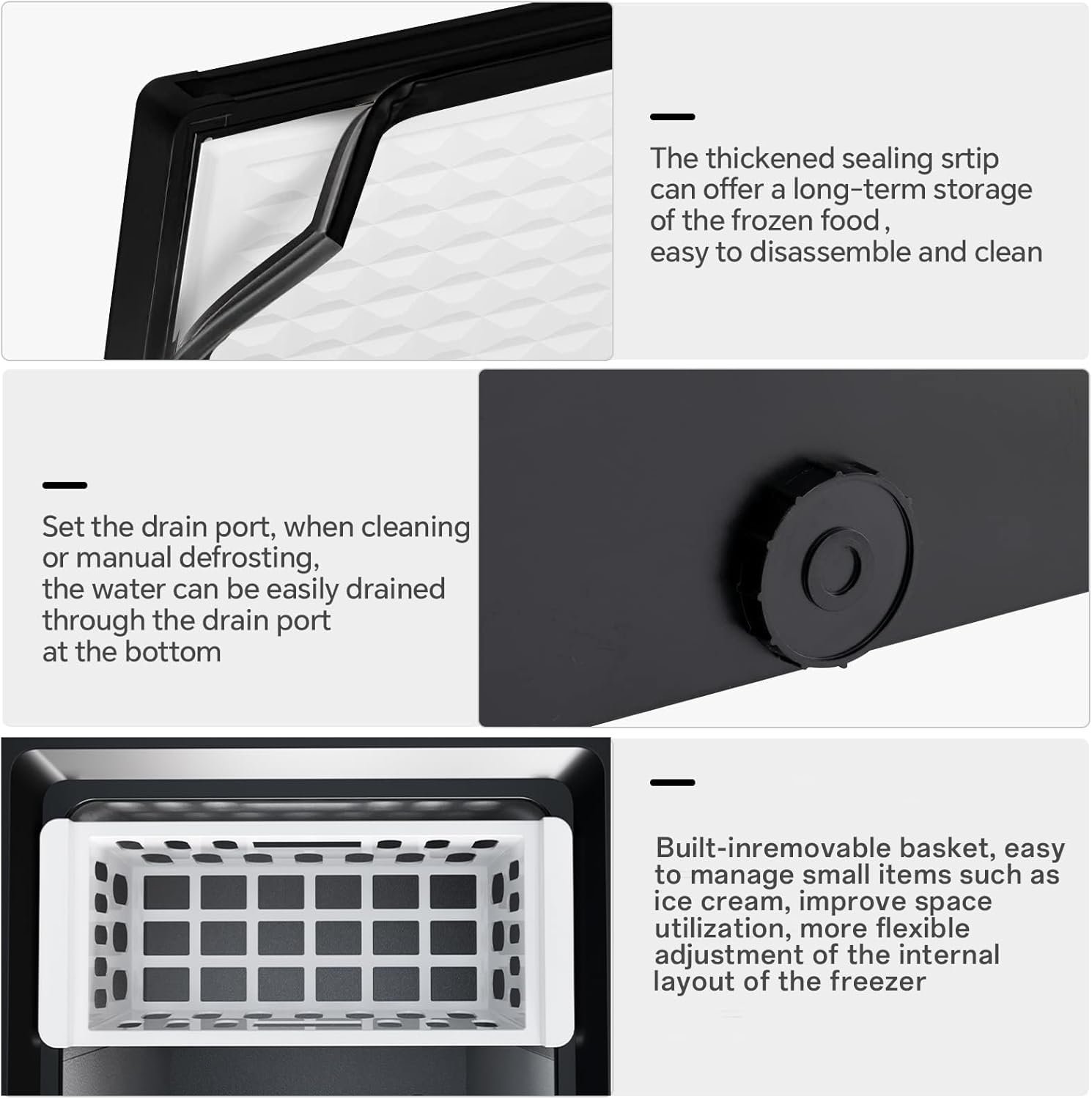 Chest freezer with removable basket provides you with a separate freezer space to store food separately.