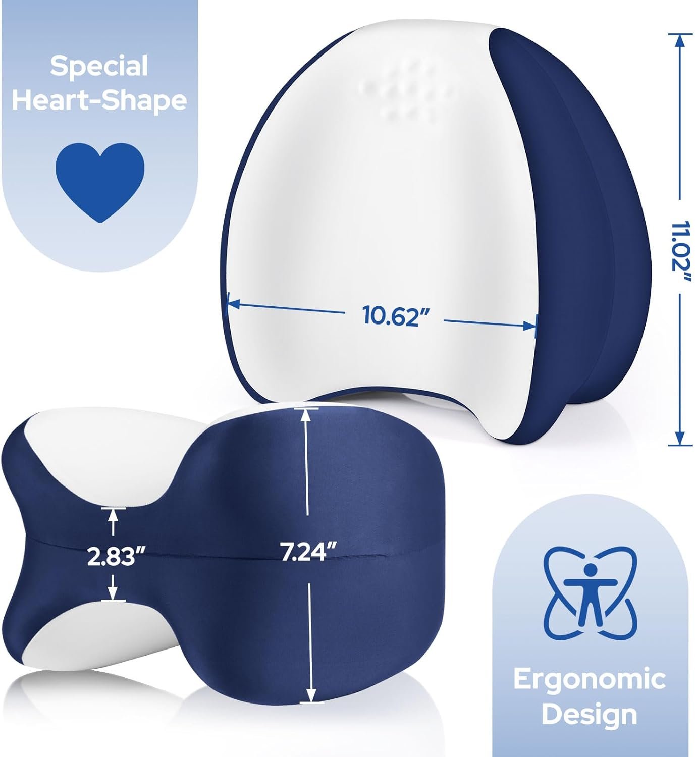 Ergonomic Heart-Shaped Design: With dimensions of 11.02″ x 10.62″ x 7.2″, our unique heart-shaped leg pillow fits your body perfectly. It stays securely in place, enhances spinal and body alignment and reduces body strain
