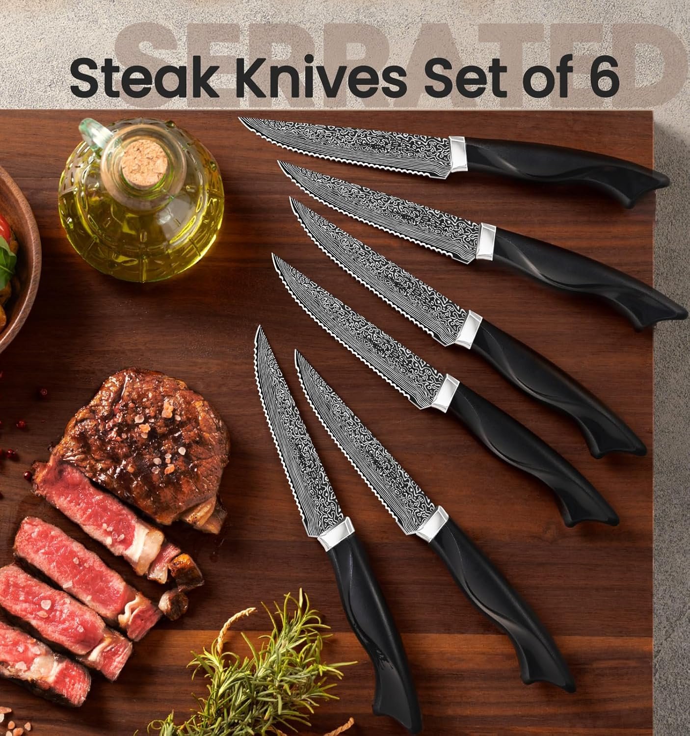 【Dishwasher Safe】 Each knife is dishwasher tested 999 times. Exclusive patented anti-rust technology ensures that they remain in the best condition after intense rinsing in the dishwasher.Enjoy the pleasure of cooking and then easily restore your kitchen to a tidy state.