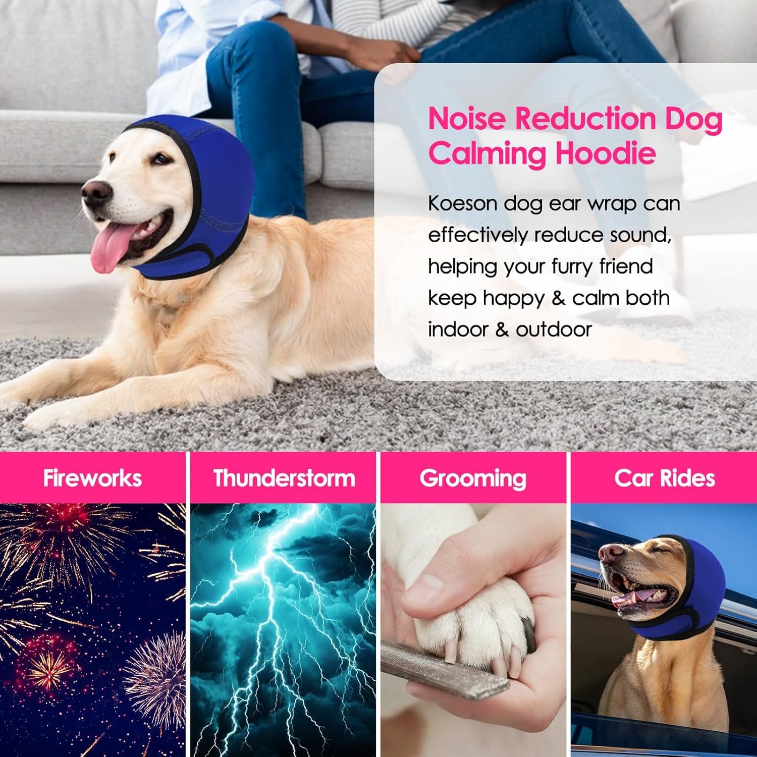 Versatile for Many Situations: The dog ear muffs are perfect anxiety relief dog hoodies for car rides, vet visits, and also dog ear covers for warm keeping in winter! 3 sizes suitable for most breeds of dogs, such as Beagle, Dachshund, Maltese, French bulldog, Labrador, Golden Retriever and so on.