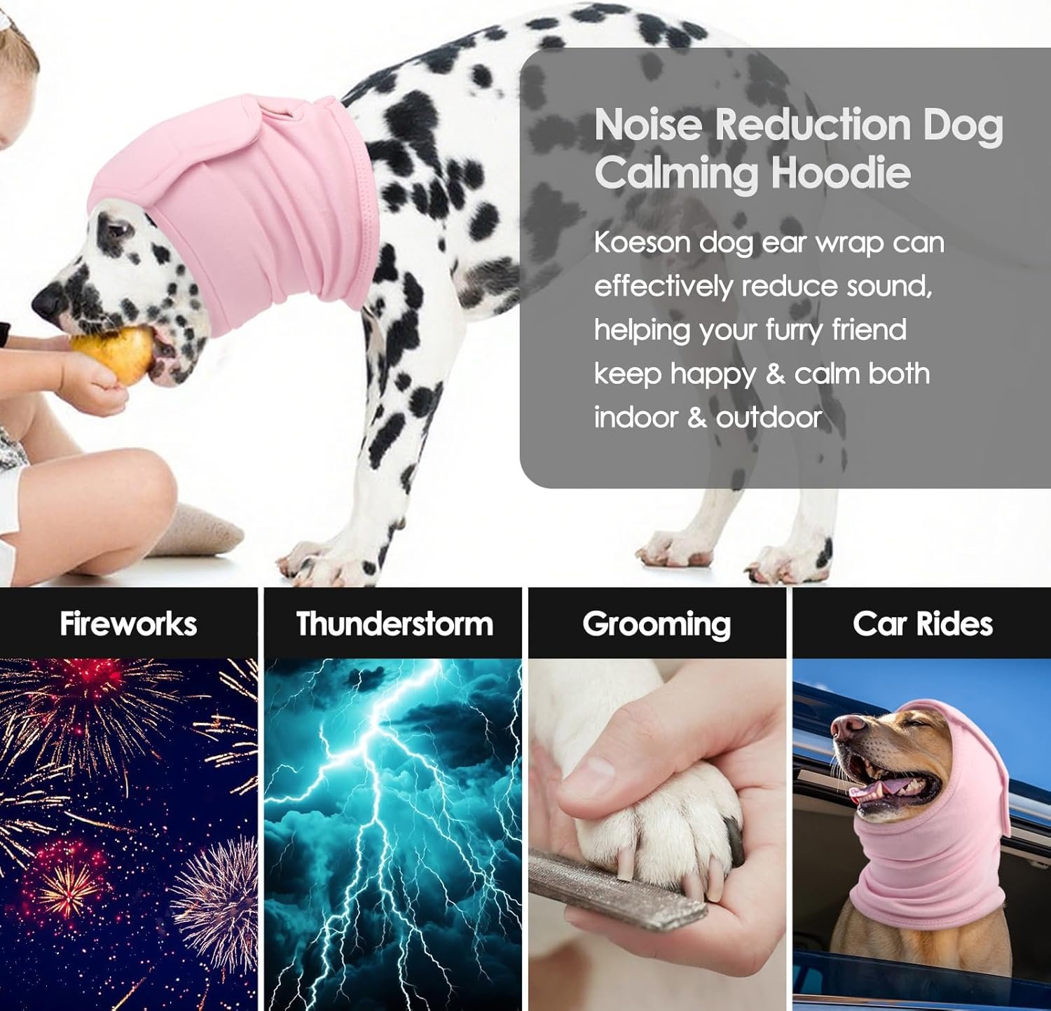 Adjustable Anxiety Relief Dog Hoodies for All Breeds: KOESON dog head cover features double extra-wide hook & loop straps for custom sizing plus S-XL options. Easily fits all breeds of dogs, with room to adjust as needed for your growing pup