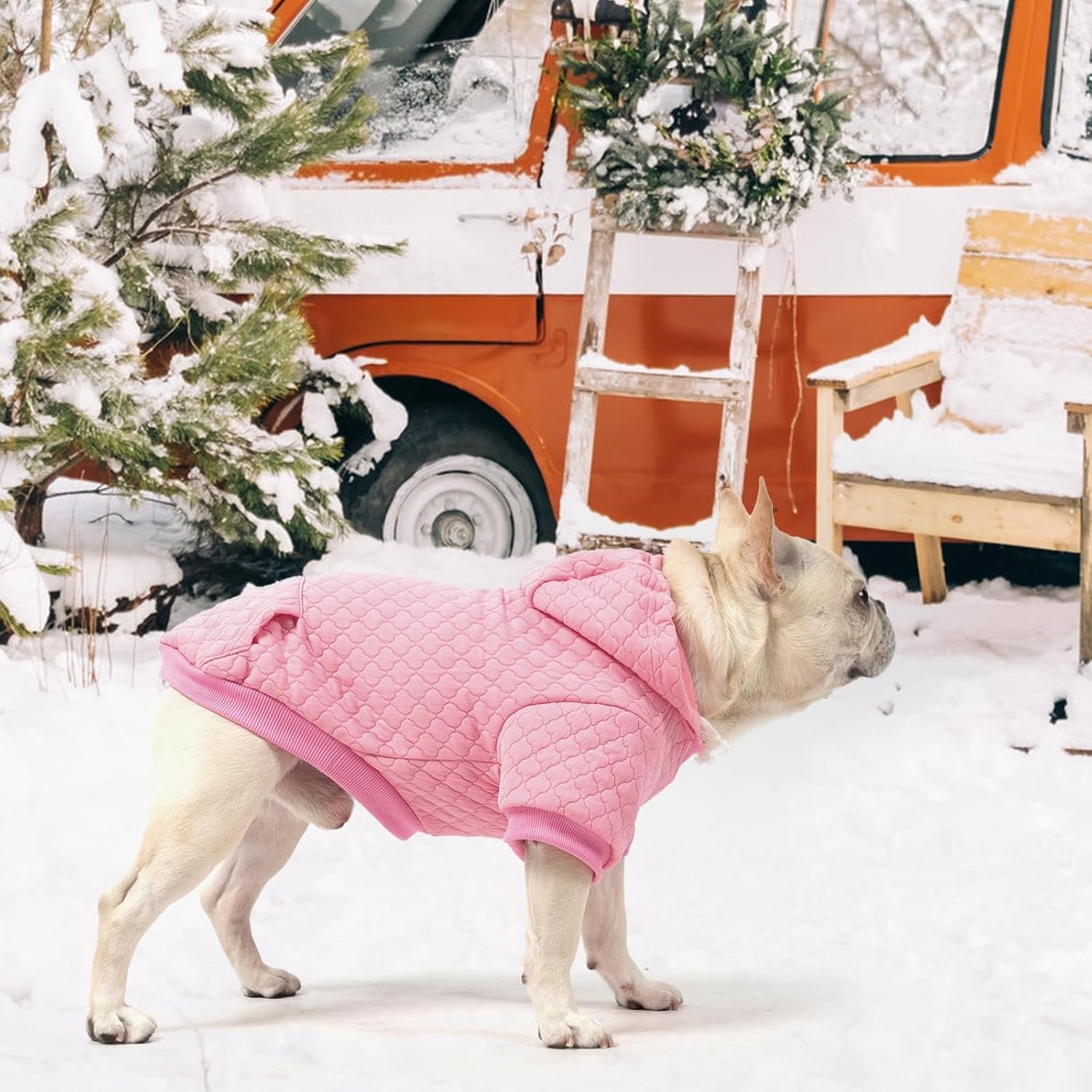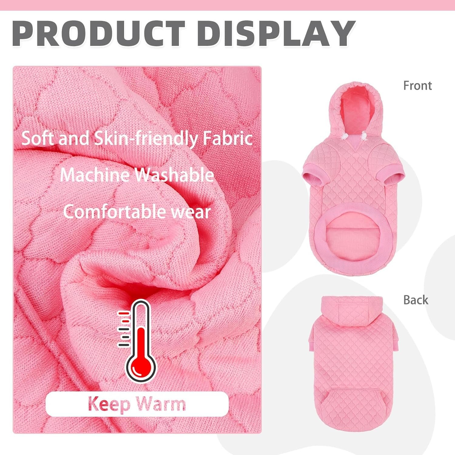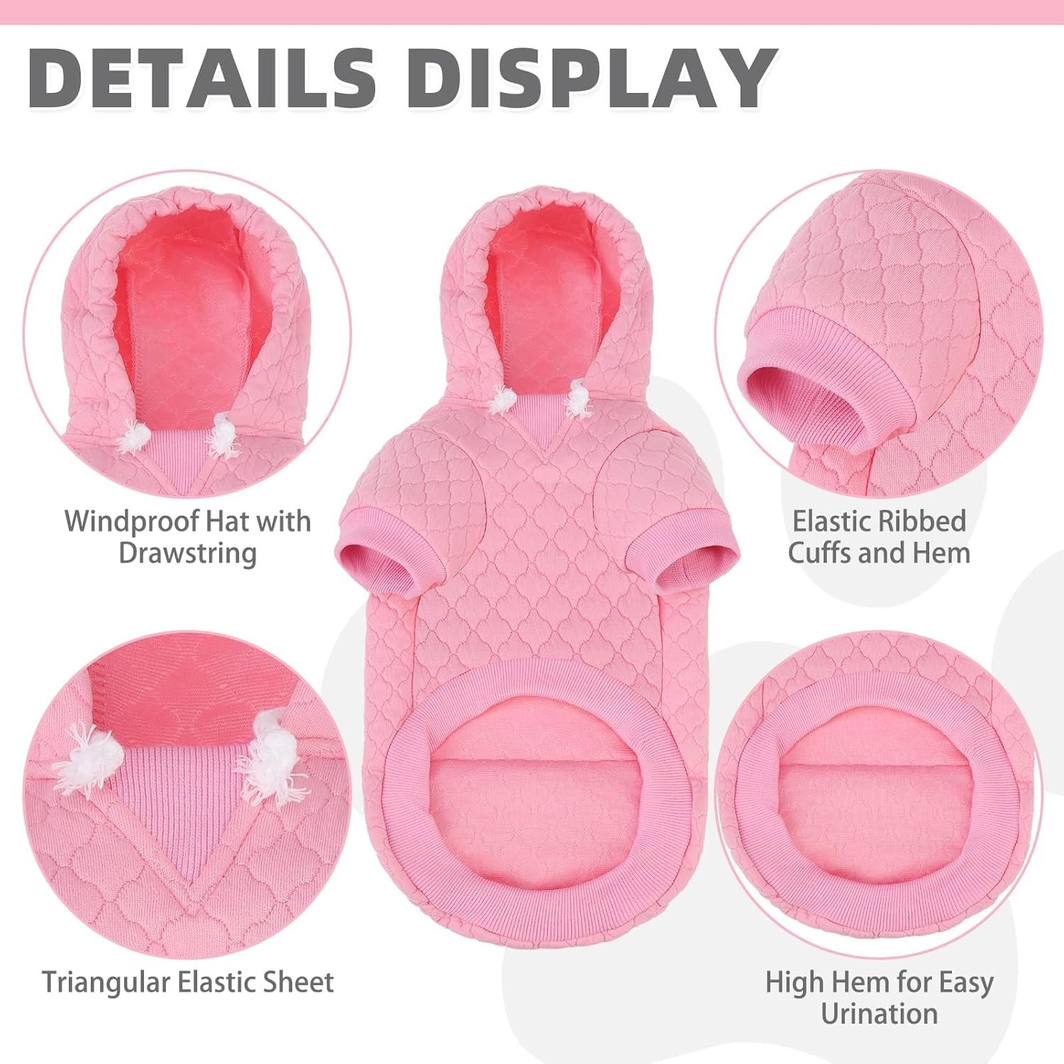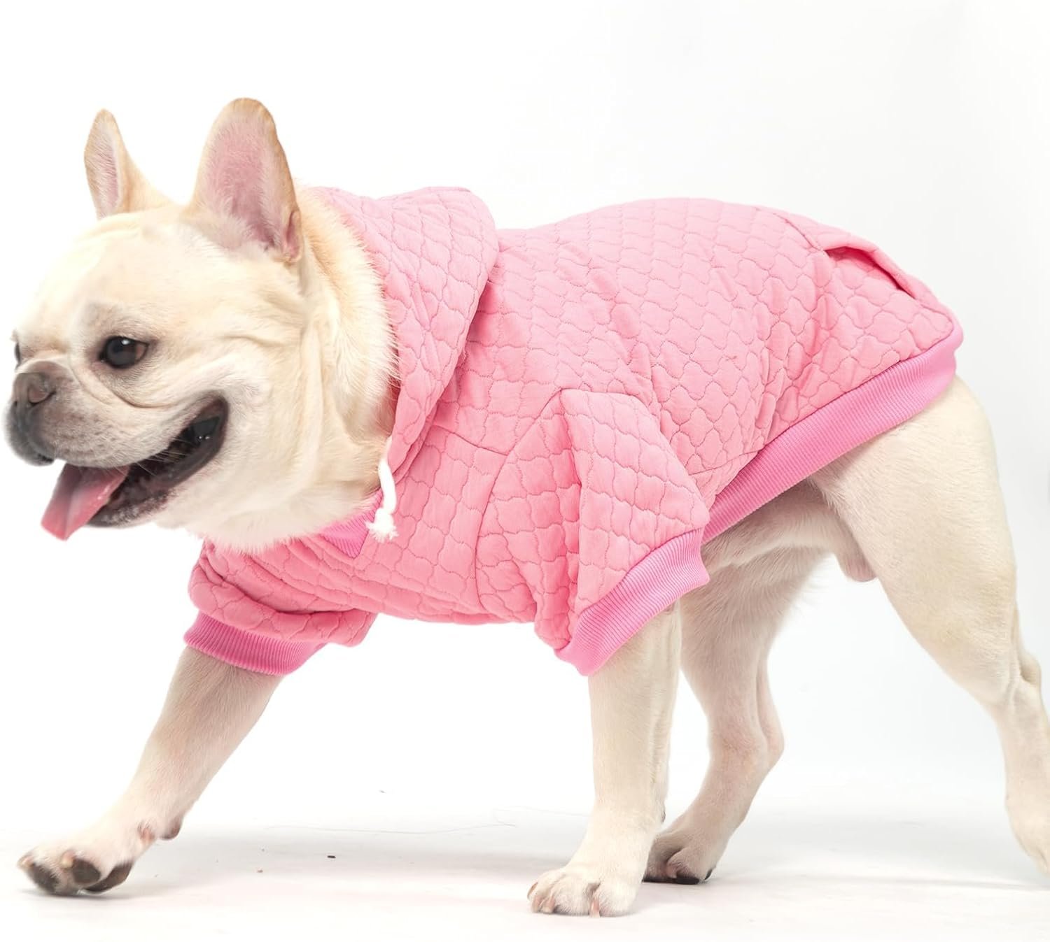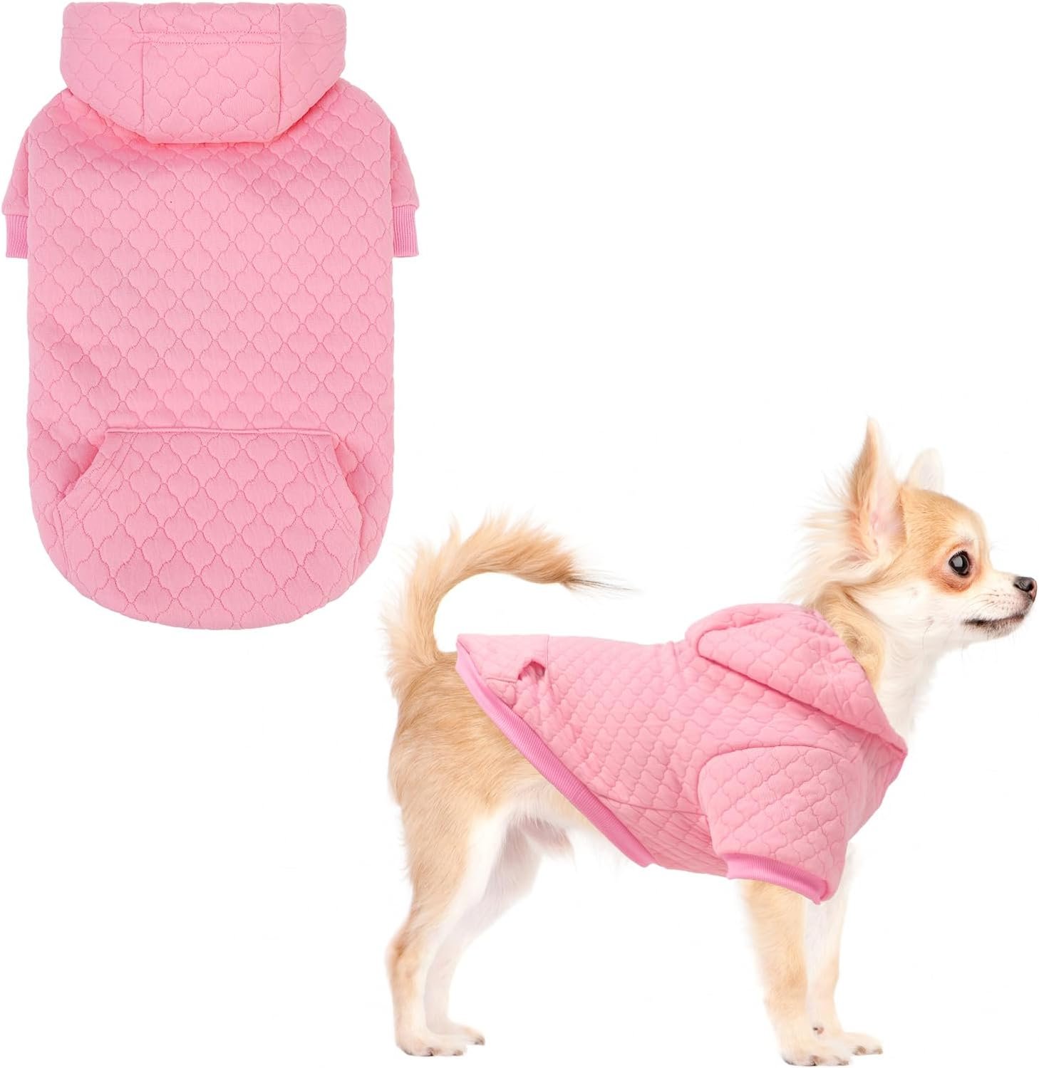WARM & COZY: Crafted from ultra-soft laminated cotton with Premium Waffle Jacquard Texture, this dog happy hoodie offers cozy warmth and comfort all winter long. The stretchy fabric of the hoodie for dog allows free movement, while the adjustable hood with drawstring helps shield your pet from chilly winds.