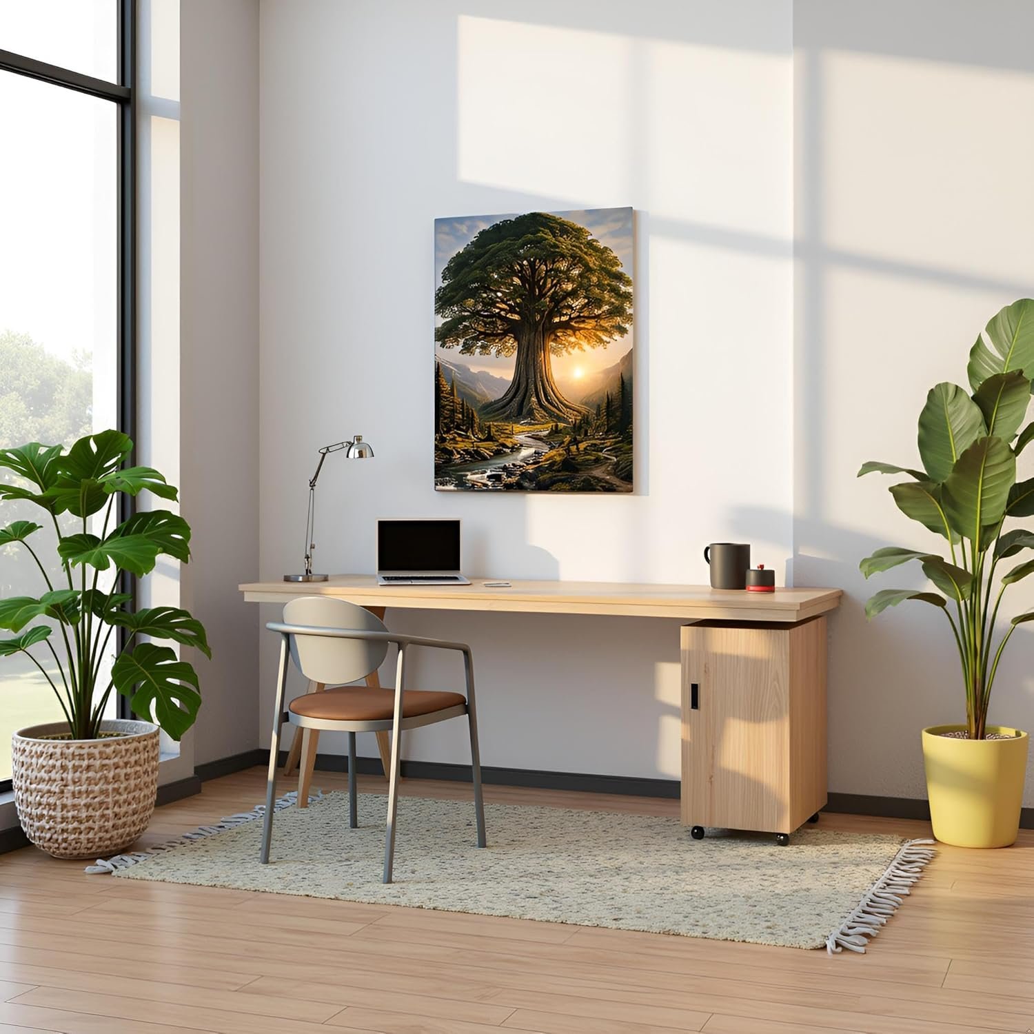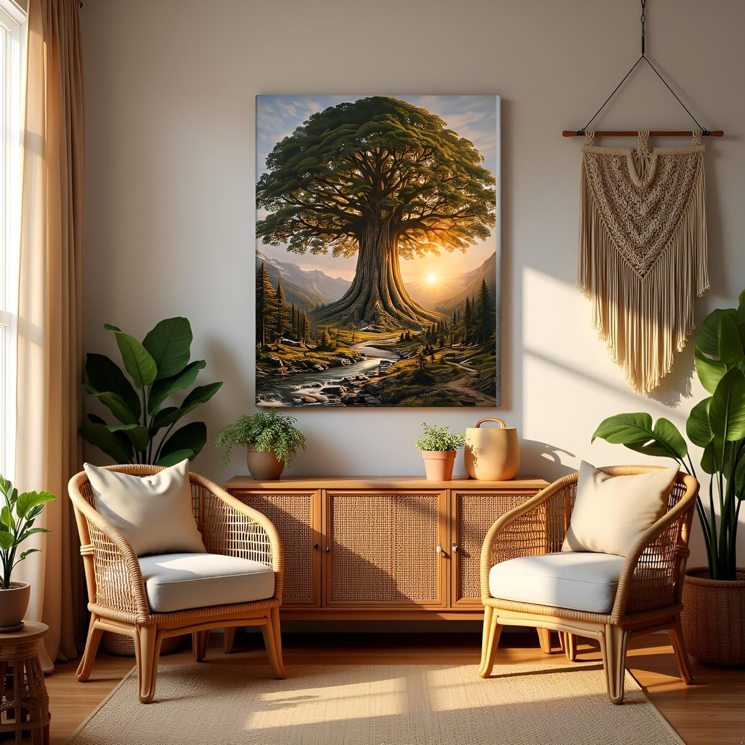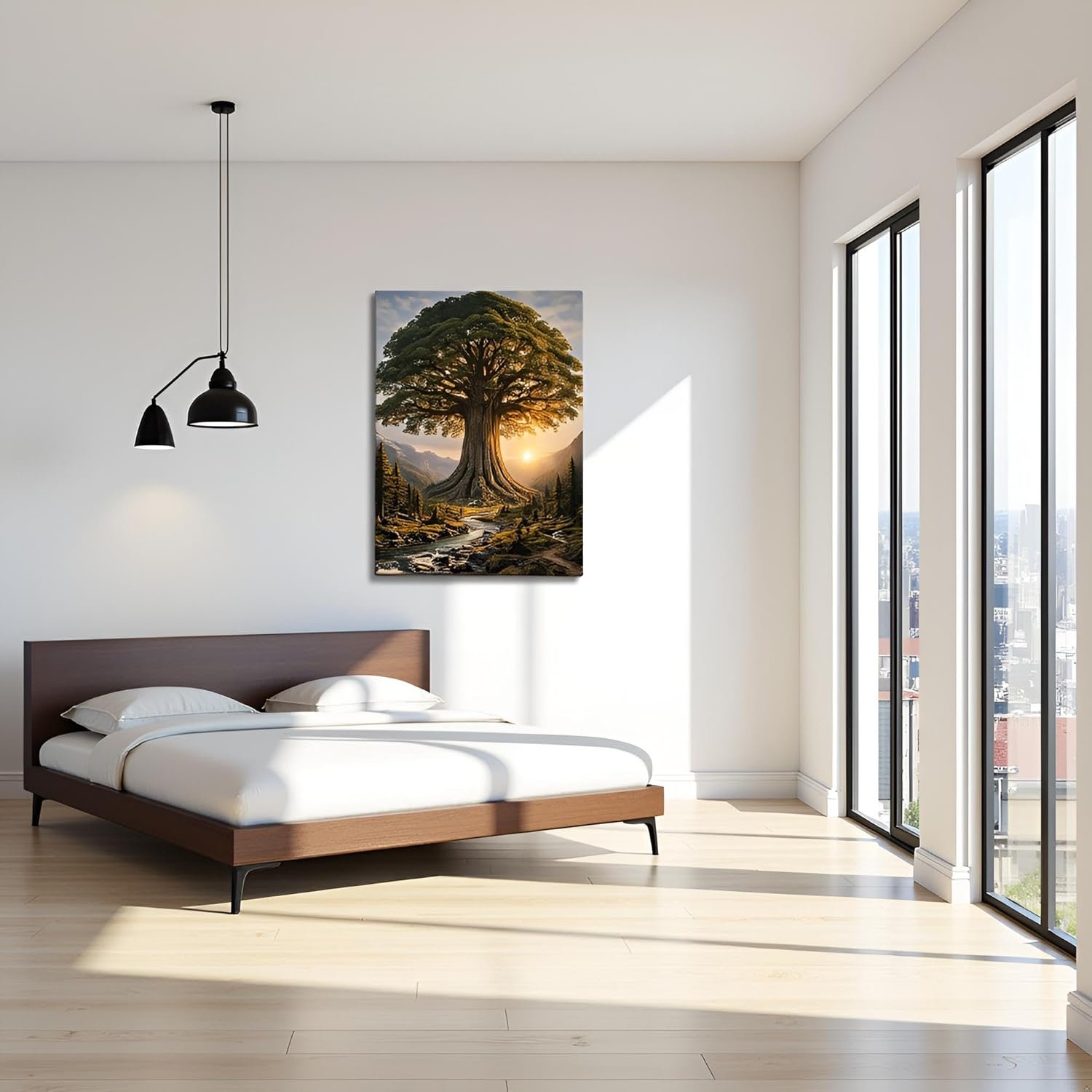 LARGE CANVAS WALL ART FOR LIVING ROOM OR BEDROOM This large canvas wall art features a striking tree and mountain sunset landscape that creates a powerful focal point. Perfect wall art canvas for living room, bedroom, office, hallway, or modern home decor.
