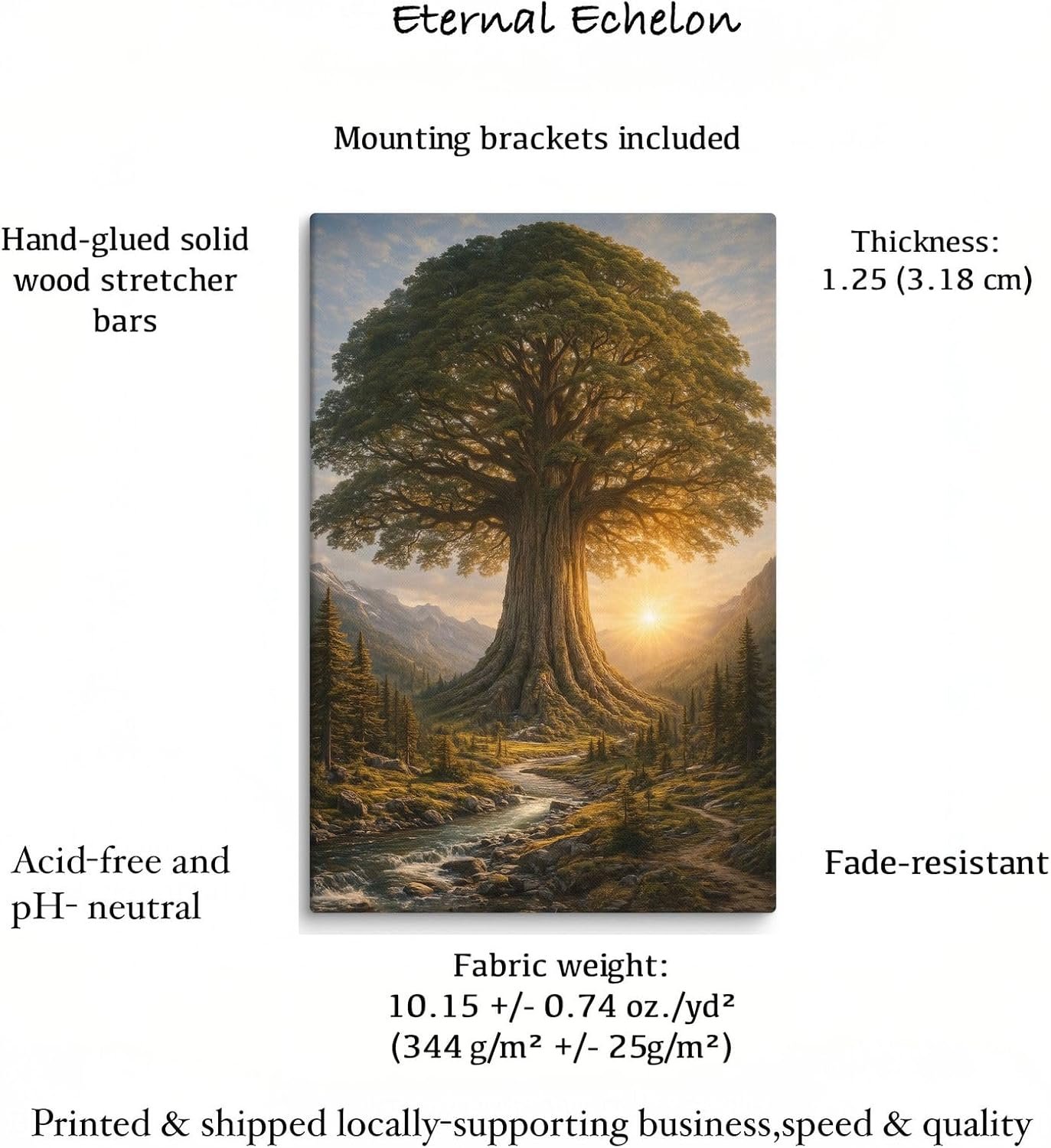 Printed on museum-grade cotton canvas using archival, fade-resistant pigment inks, Eternal Echelon delivers refined detail, controlled contrast, and long-lasting color clarity. Each canvas is produced to professional standards to ensure durability and visual integrity over time. Gallery-wrapped around a solid wooden frame and delivered fully assembled, it arrives ready to hang with no additional framing or setup required.