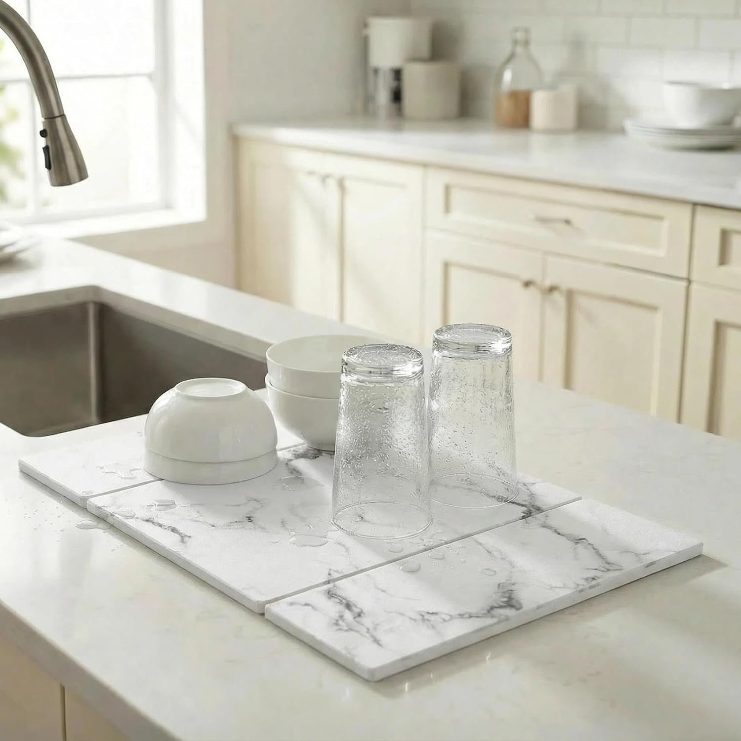 【Super Absorbent!】Still bothered by countertops constantly getting wet while washing dishes? Want to keep your kitchen countertops clean and tidy? Our dish drying mats for kitchen counter features exceptional absorption power, which can absorb water quickly within minutes to keep your kitchen counter dry.