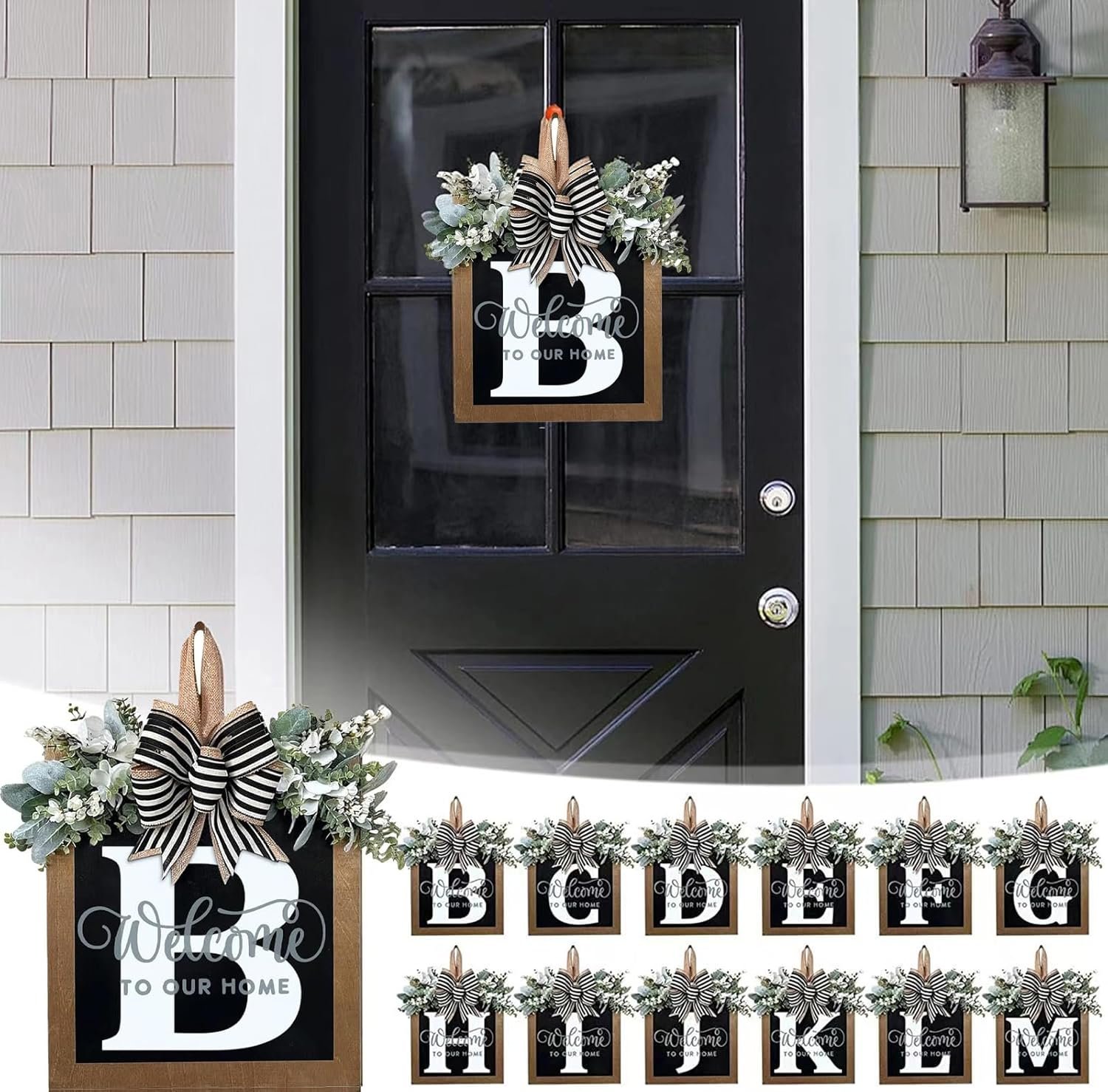 Personalized Monogram Wreath for Front Door:Welcome guests in style with a fully customizable wreath featuring your family name! Choose from 26 elegant letters to create a unique monogram garland that adds a personal touch to your farmhouse, rustic, or modern home decor. Perfect for year-round display.