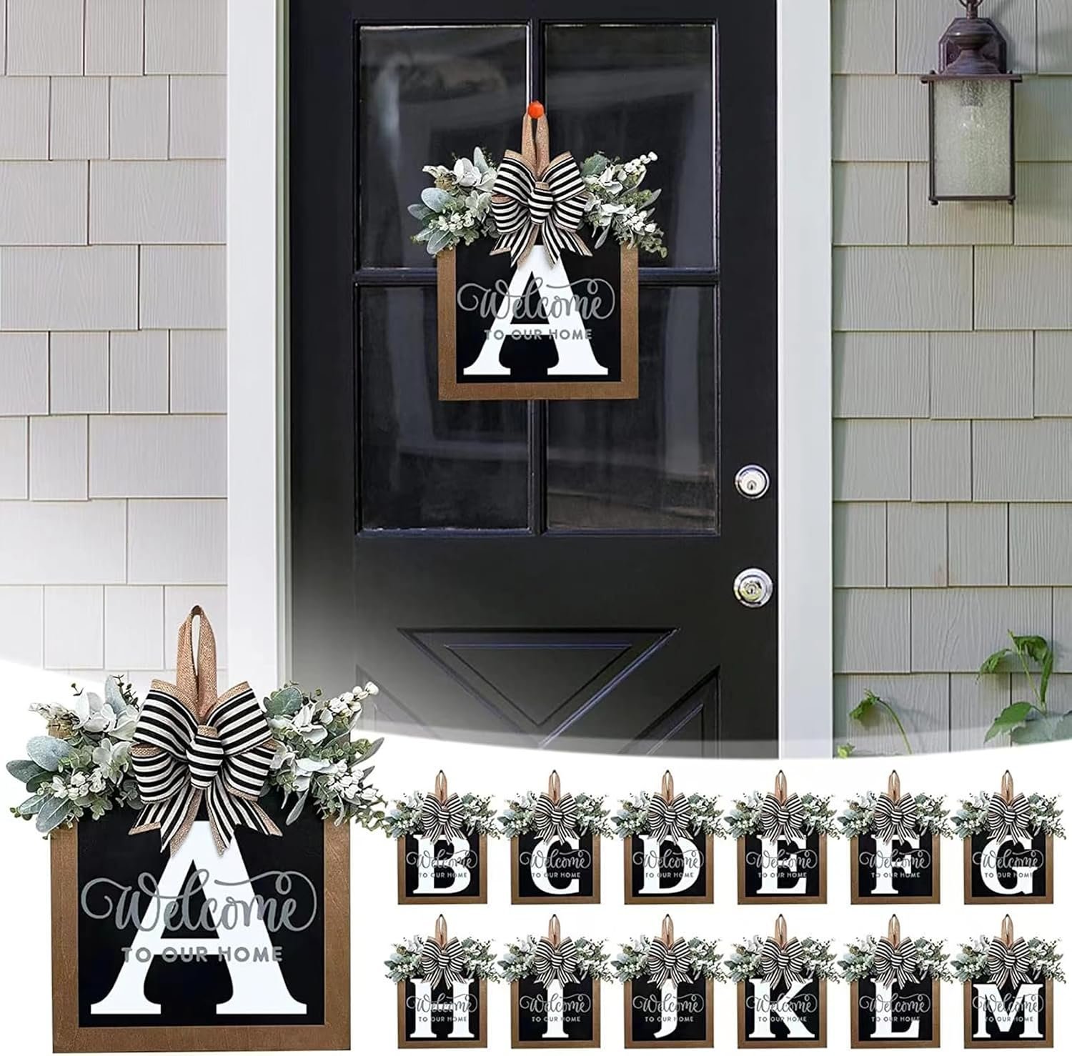 Personalized Monogram Wreath for Front Door:Welcome guests in style with a fully customizable wreath featuring your family name! Choose from 26 elegant letters to create a unique monogram garland that adds a personal touch to your farmhouse, rustic, or modern home decor. Perfect for year-round display.