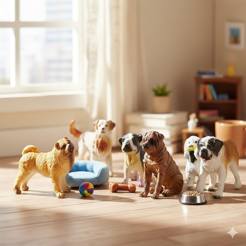 18 Assorted Breeds: Toy Poodle, Pomeranian, Chow Chow, Yorkie, Chihuahua, Retrievers and more!Hand-Painted: Highly detailed dog figurines that serve as an excellent addition to any children’s toy collection.Larger in Size: Figures measure up to 4″ in length. Perfect size for little hands. Safe & Durable: Made of high-quality, durable ABS plastic, Non-Toxic Paint and Odorless.Quality Tested: Adheres to strict ASTM standards for child safety, and are tested by an independent third party lab..