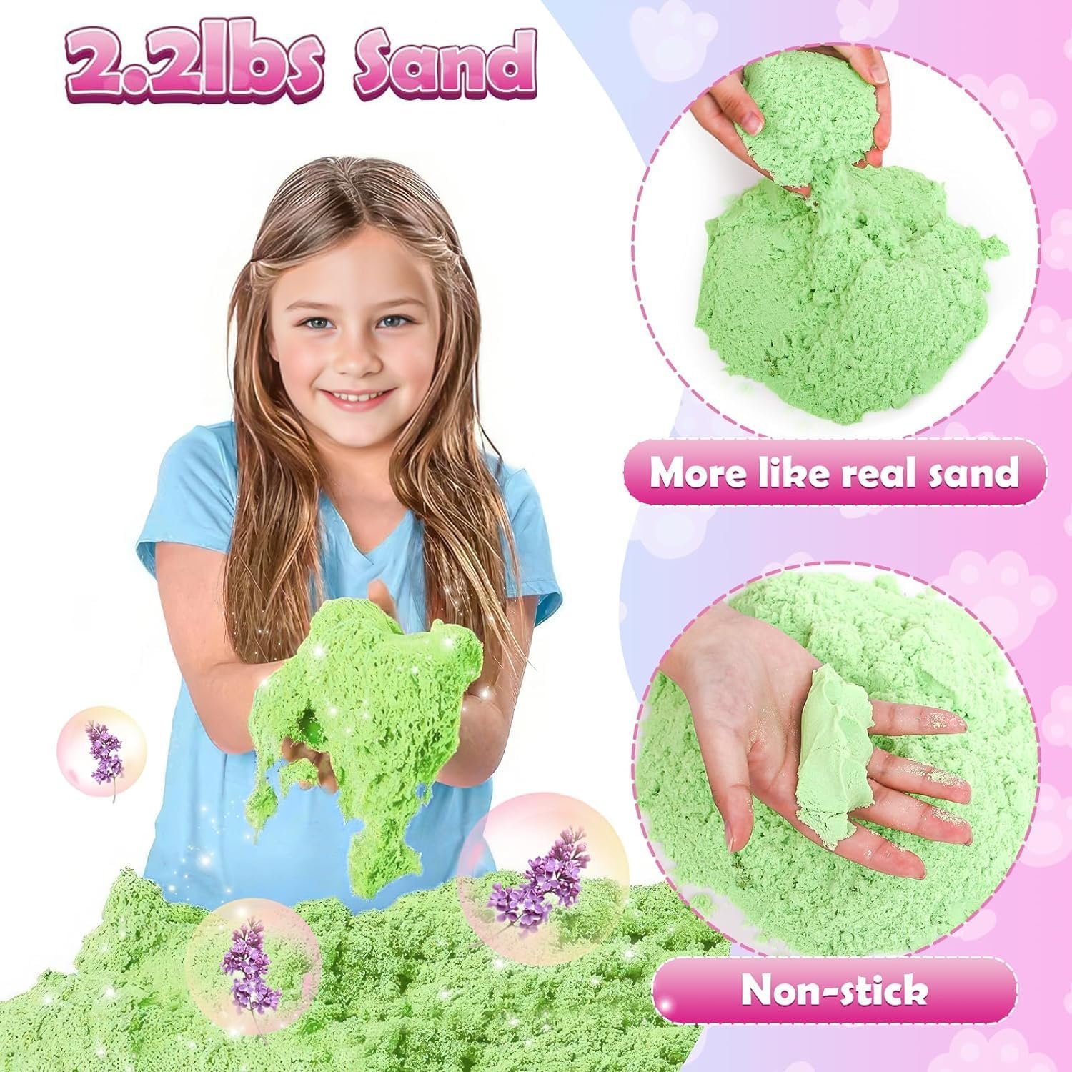 【2.2lbs High-Quality Sand】—Made of high quality Made of high quality material sand, sticks to itself, plasticity, odorless, easy to shaped, non-sticky, not dry. All the products have been tested and are safe for use. Keeping your lovely kid’s safe and happy is always our pursuit