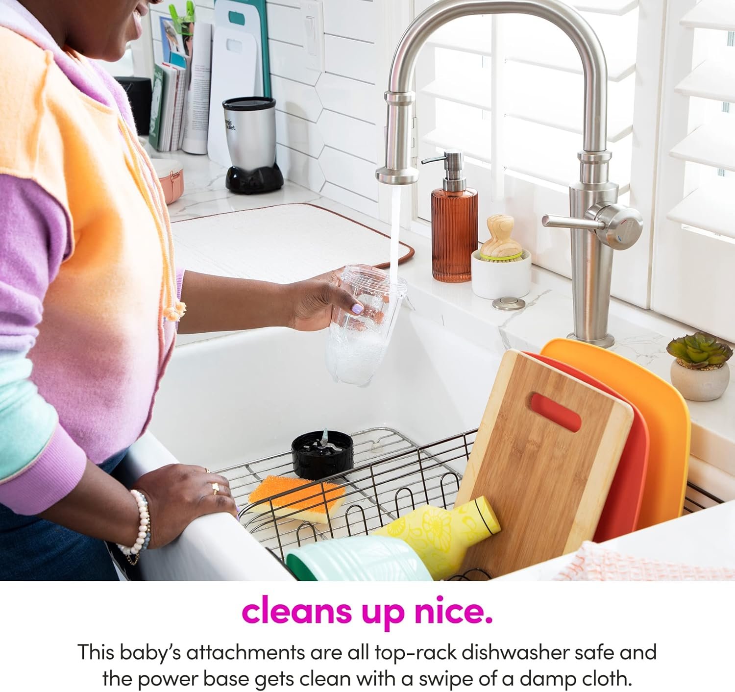The magic bullet chops, mixes, blends, whips, grinds and more. Cups are made out of high-impact plastic.