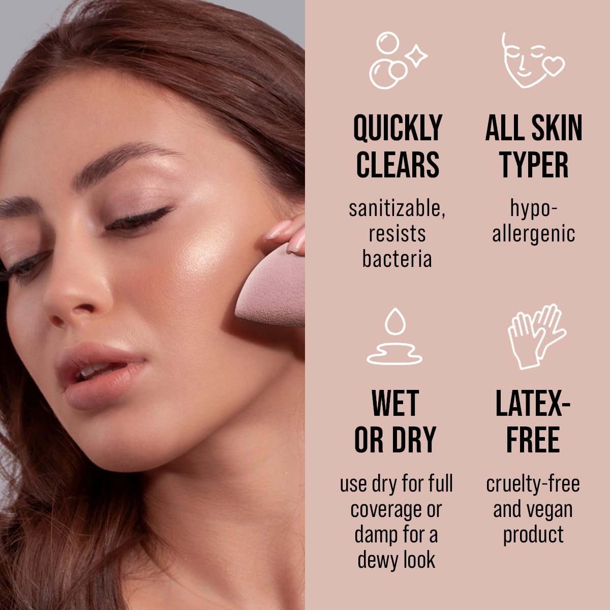 LATEX FREE: Made from high-quality, non-latex super-soft foam, durable, and easy to clean for long-lasting use makeup sponge. Vegan, Cruelty Free
