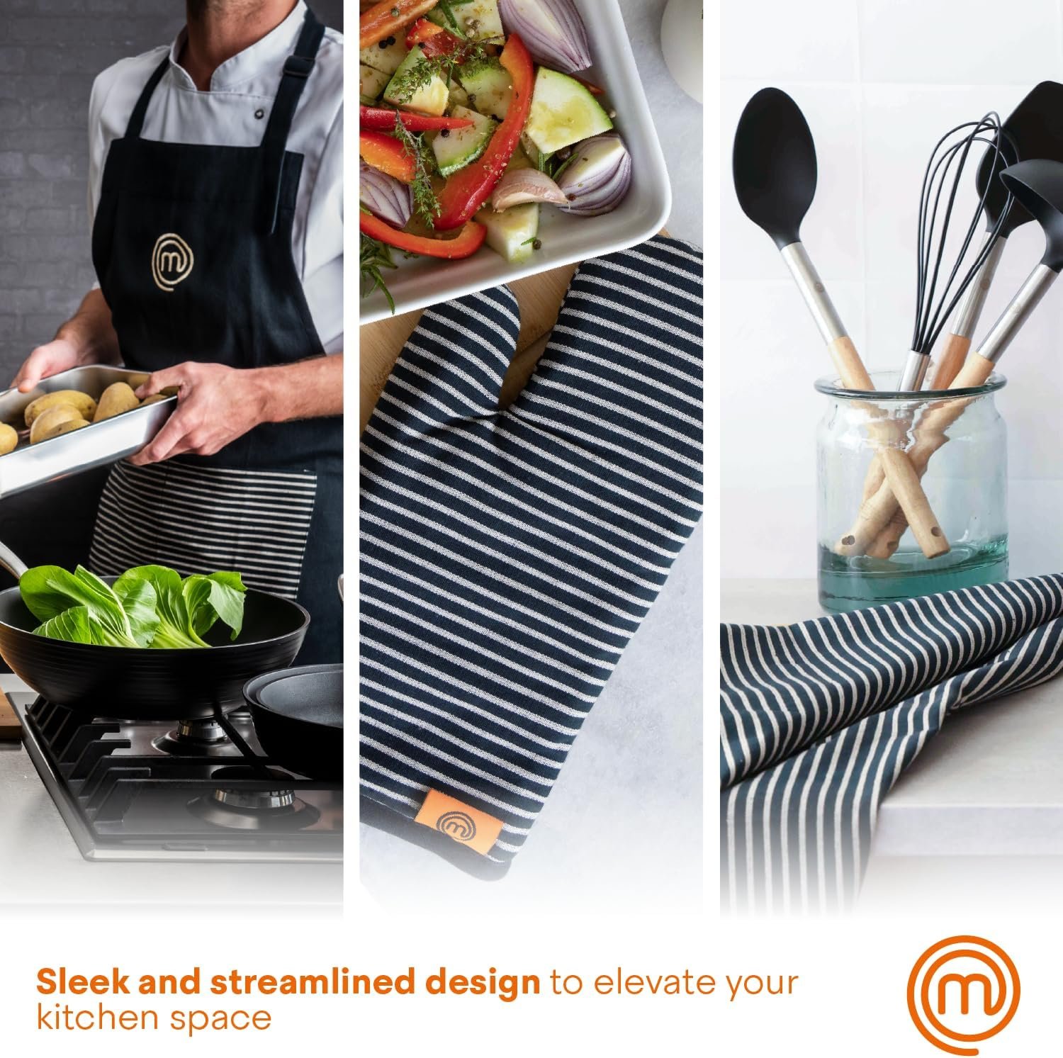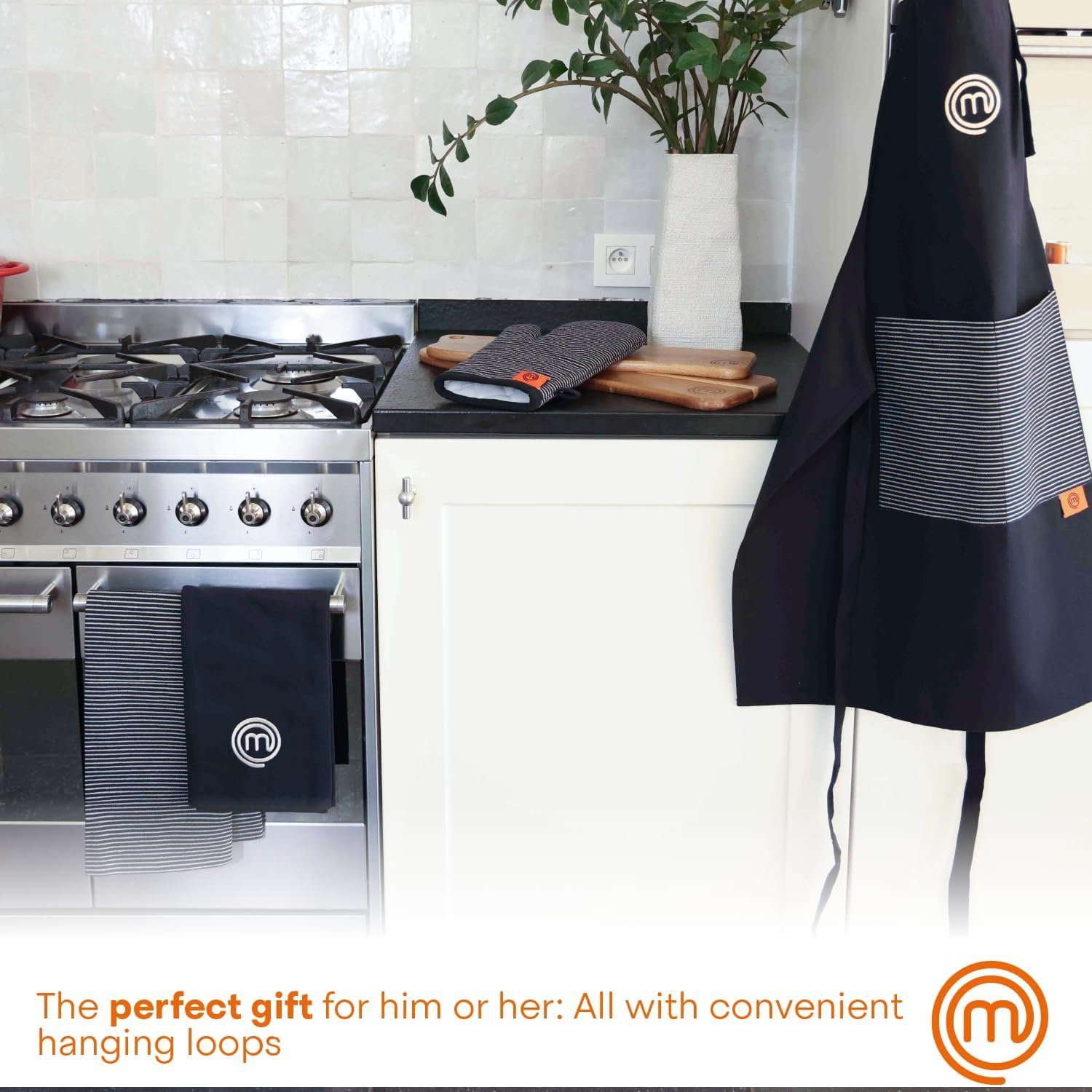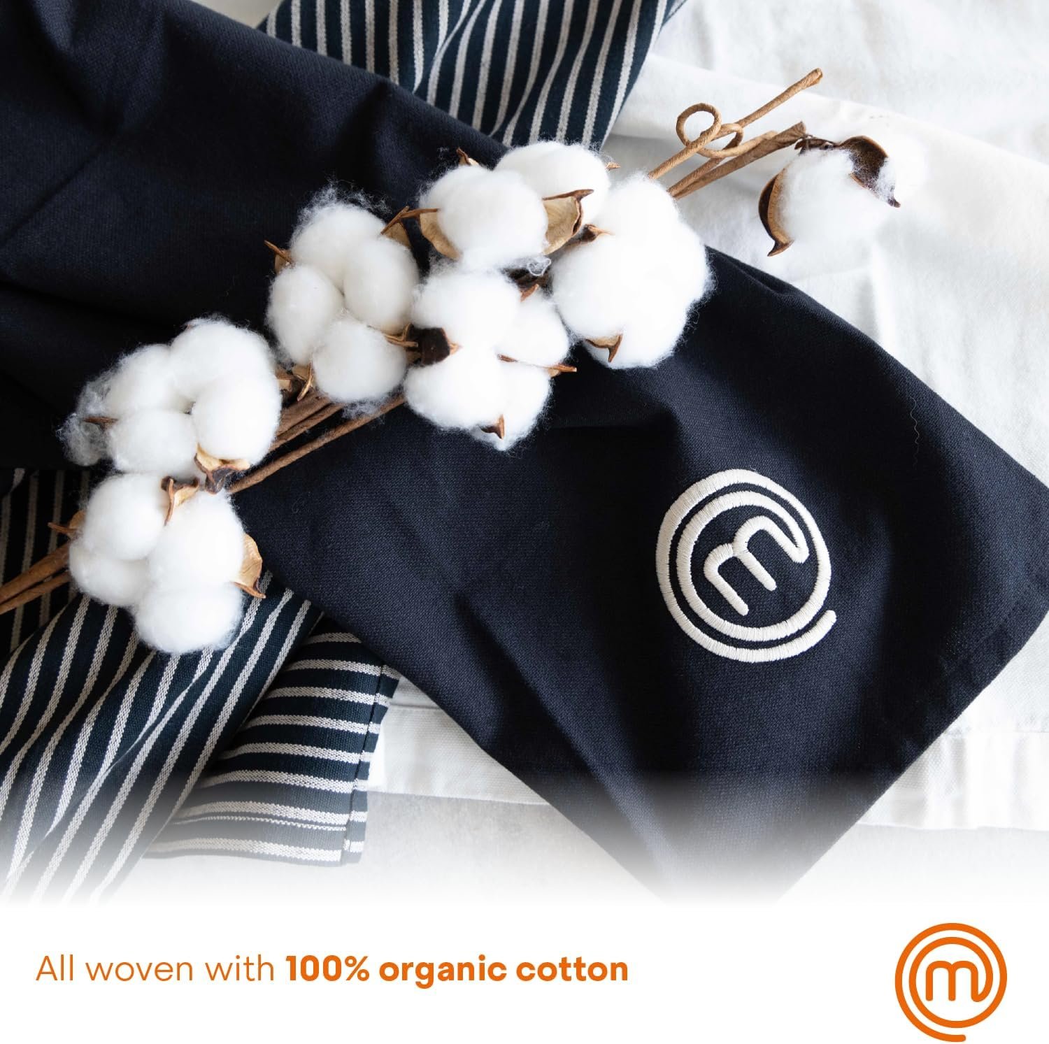 Designed with 100% organic cotton and printed MasterChef logos and hanging loops, these kitchen textiles are completely machine washable, making it super easy to keep them clean and hygienic for daily use.