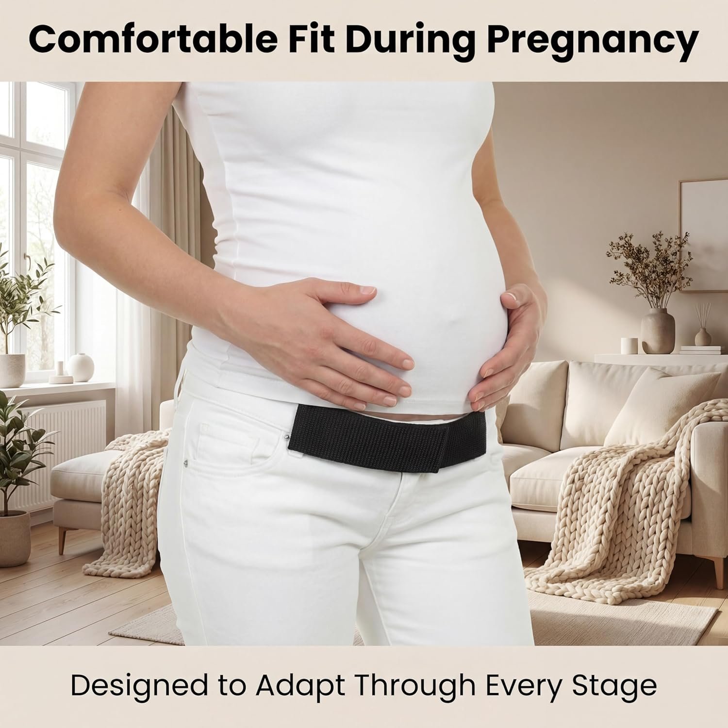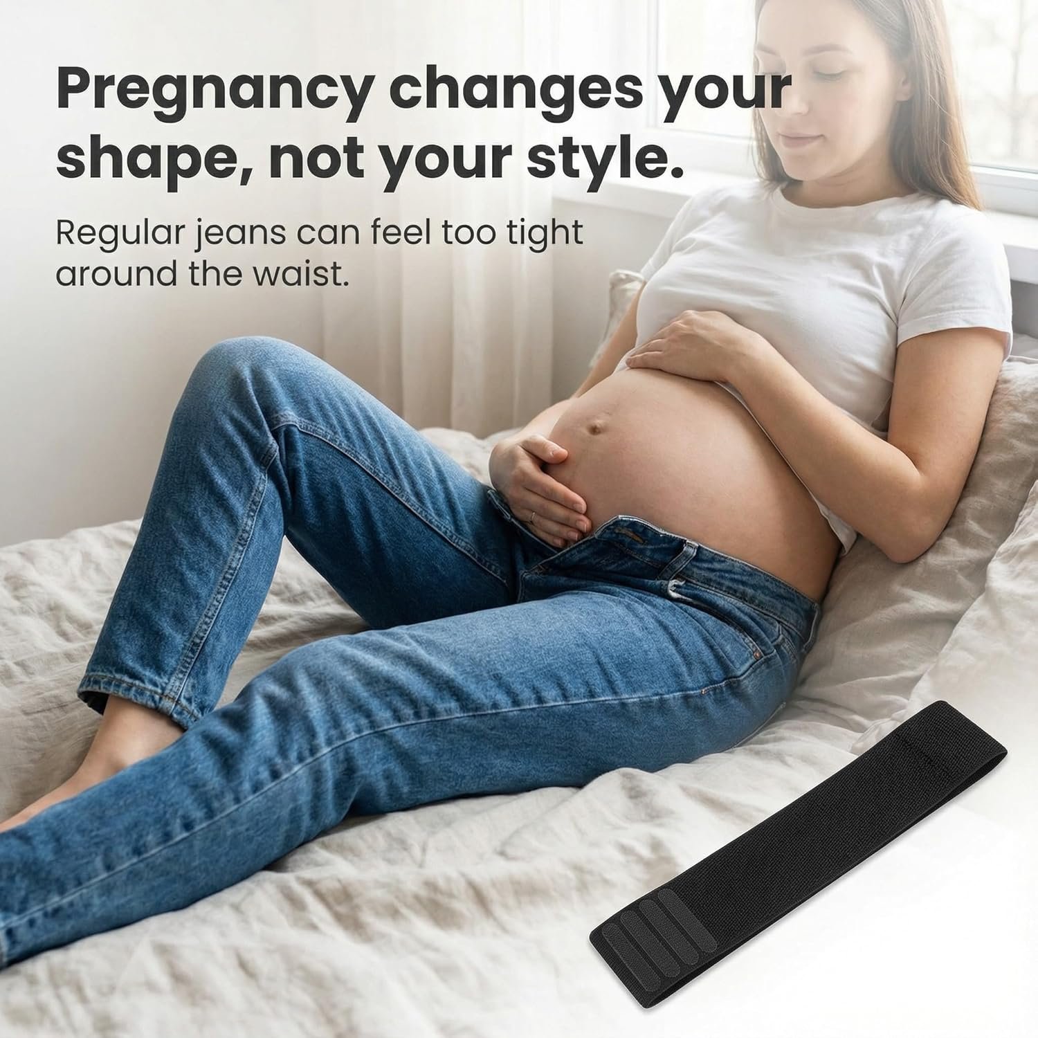 【Works with Most Jeans & Pants】 Compatible with jeans, trousers, and casual pants, this maternity belly band for jeans is a versatile solution for work, daily wear, and casual outfits.