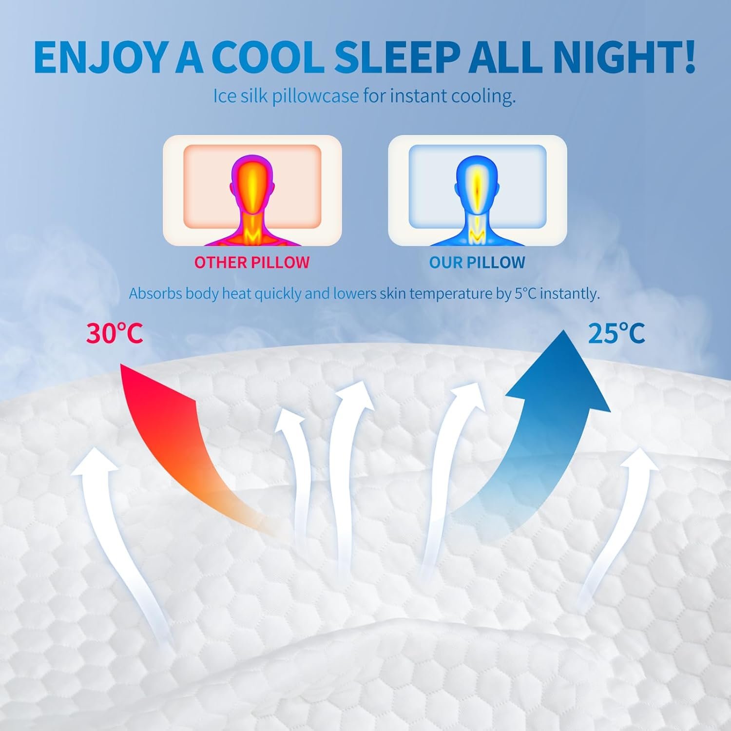Moisture-Wicking & Hypoallergenic Pillow Cover — The removable, machine-washable cover is made from premium breathable fabric to keep your pillow fresh, dry, and allergy-free. With this neck support pillow, you can sleep soundly and stay dry all night!