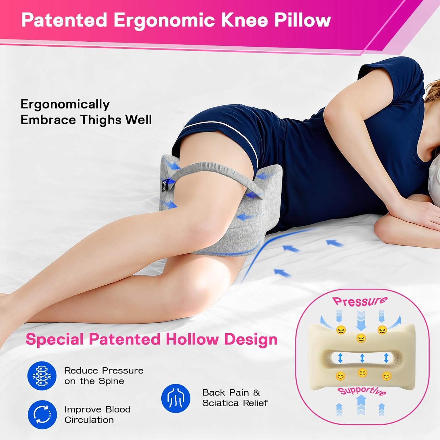 【Alignment pillows for side sleepers】The ergonomic design of the knee pillow for side sleeping perfectly fits the curves of the human body, allowing your legs to maintain a natural position during sleep. The smooth spine pillow for side sleeping comfortably supports your legs and knees, provides correct sleep posture and positioning, and eliminates painful pressure points.