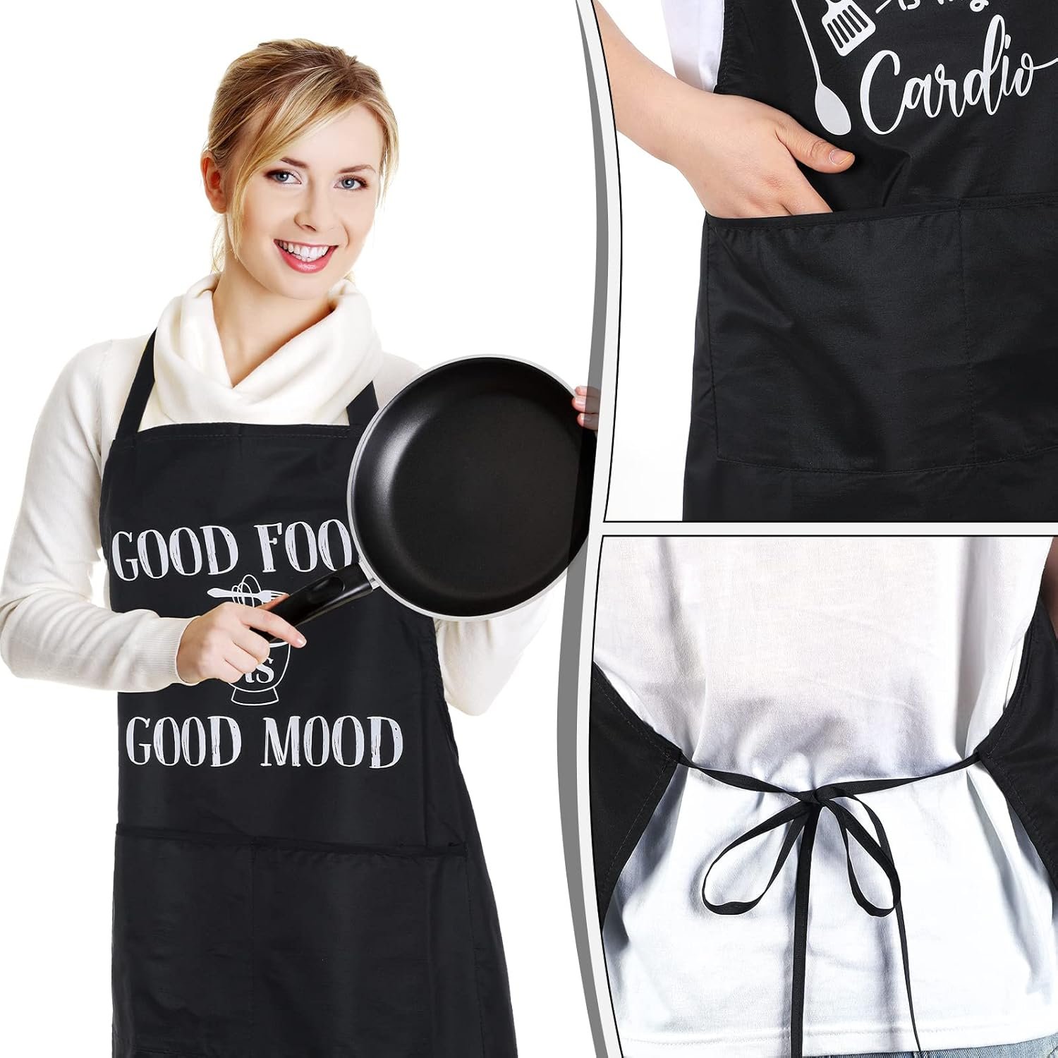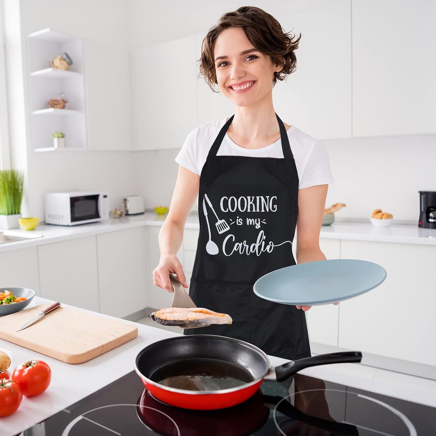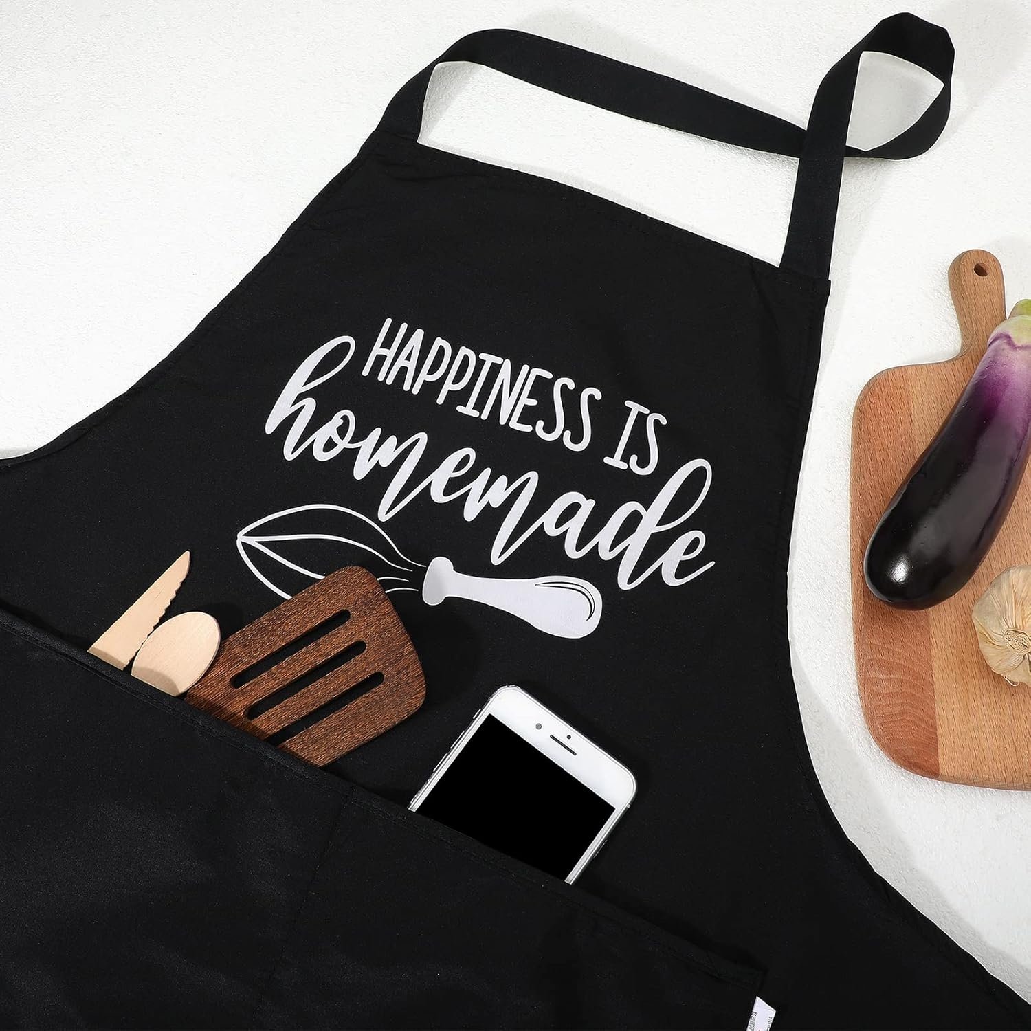 The cooking aprons for men are printed with the letters of [cooking is my cardio], [good food is good mood], [my kitchen my rules], [happiness is homemade], showing your humor, adding interests to your life.