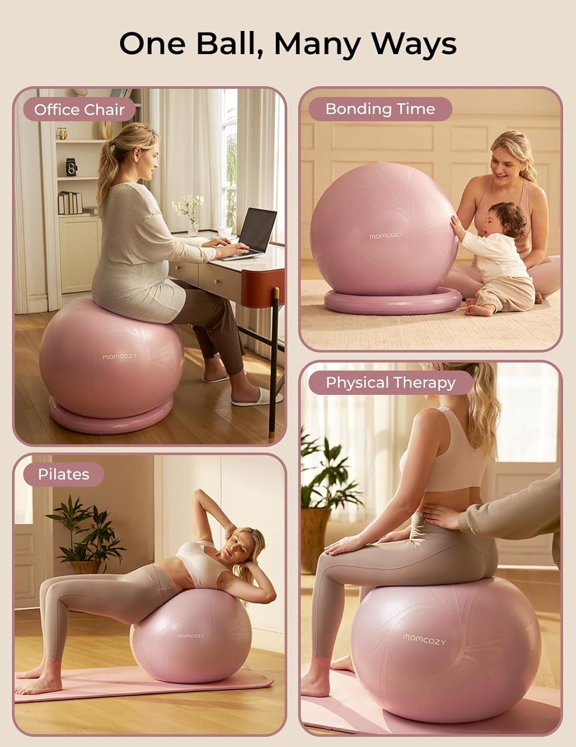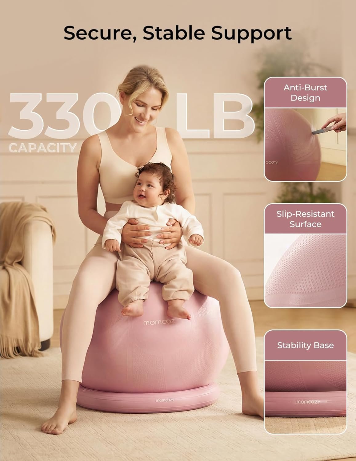 Maximum Safety with BPA-Free Materials: Momcozy maternity ball Constructed from premium, BPA-free PVC and featuring anti-burst technology, encourages sustainable, responsible use. It is designed to deflate slowly in the rare event of a puncture, keeping every moment calm and secure for us and our baby.