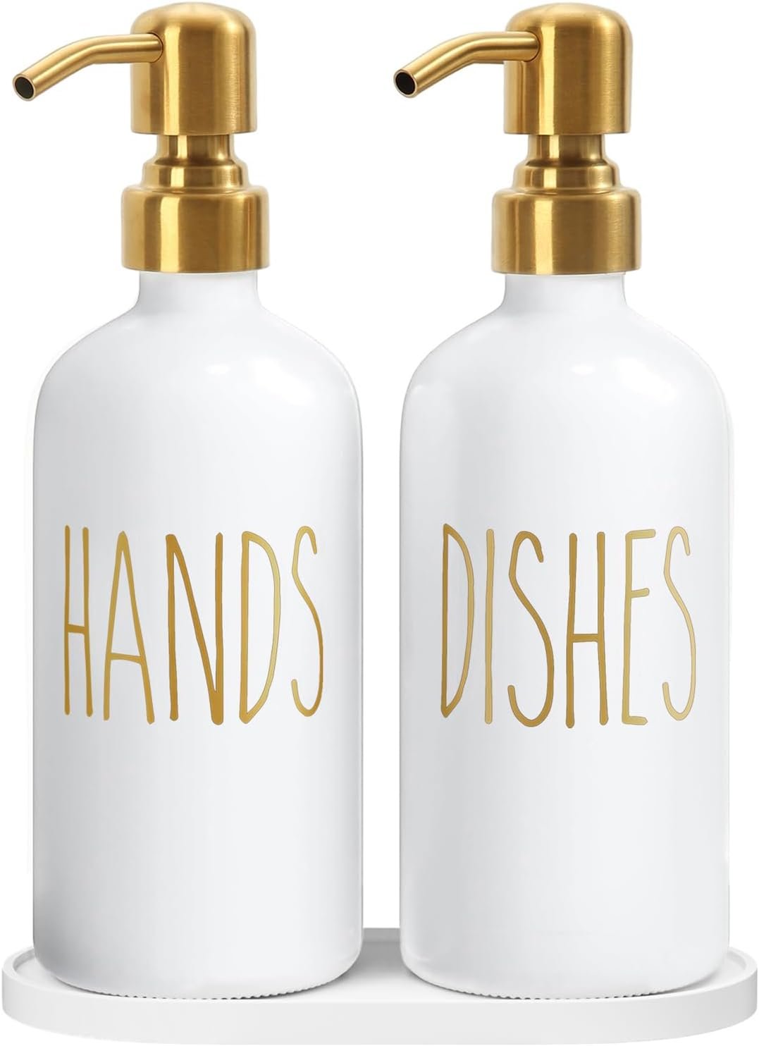 [Versatile and Reusable] Pump bottle dispenser can be used anywhere in the kitchen. From the glass soap dispenser with pump to the cute soap dispenser tray will not rust, can be refilled, and is reliable.