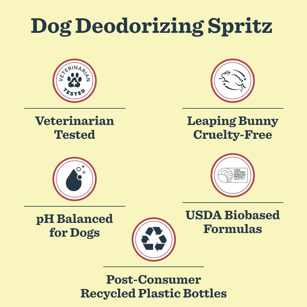 Mrs. Meyer’s Clean Day, now for your pets. Our new Dog Deodorizing Spritz is an easy, no rinse spritz. A gentle, just-for-dogs formula conditions coats and adds shine with just a few sprays. This gentle, soft (and quiet!) spritz makes for an easy application on even the wiggliest and most excitable of pups. Plus, our hardworking pet keeping formula fights stinks and smells right at the source, keeping your dog feeling fresh and smelling clean.