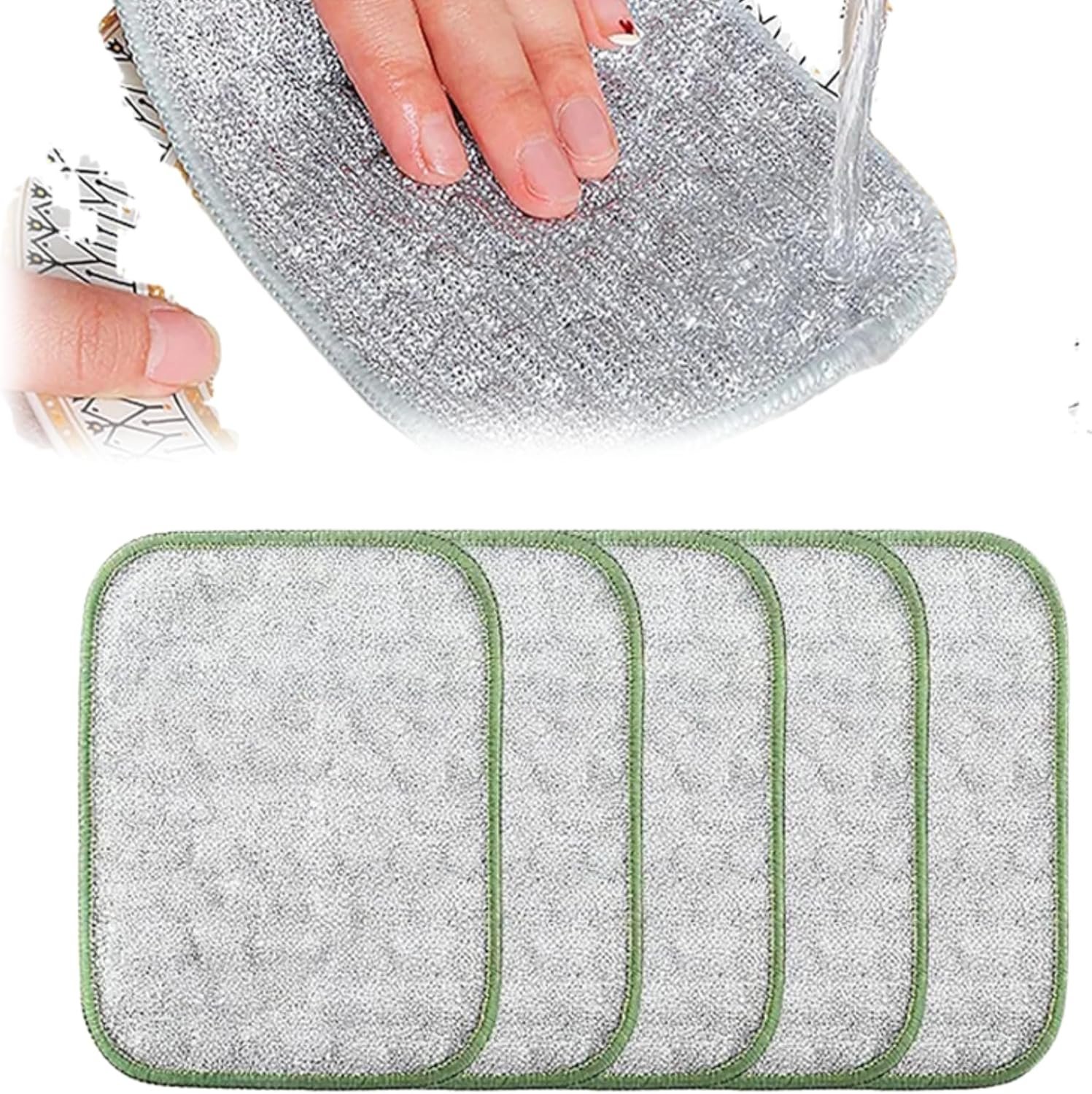 Multipurpose Wire Dishwashing Rags for Wet and Dry, Upgraded Reusable Steel Wool Scrubber 2-Layer Microfiber Wire Dishcloth, Multifunctional Dish Rags for Kitchen, Pots, Pans, Sinks