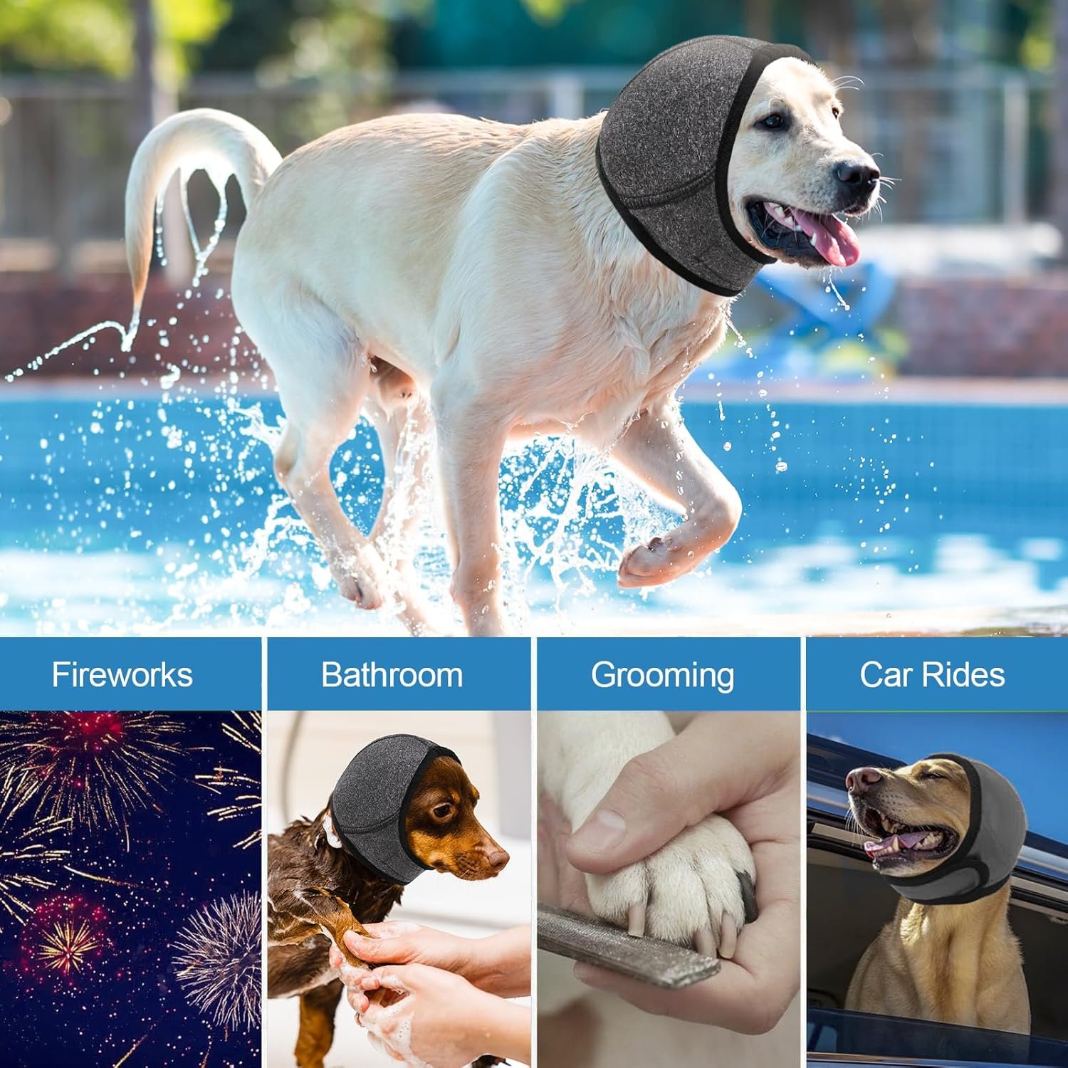 Versatile for Many Situations: Perfect for fireworks, thunder, vet visits or noisy settings, designed for beauticians and veterinarians, save time in beauty salons, such as cutting toenails, nails, brushing teeth, bathing, etc., and by soothing uneasy, unpleasant and aggressive. Securely protect ears to prevent or heal hematomas.