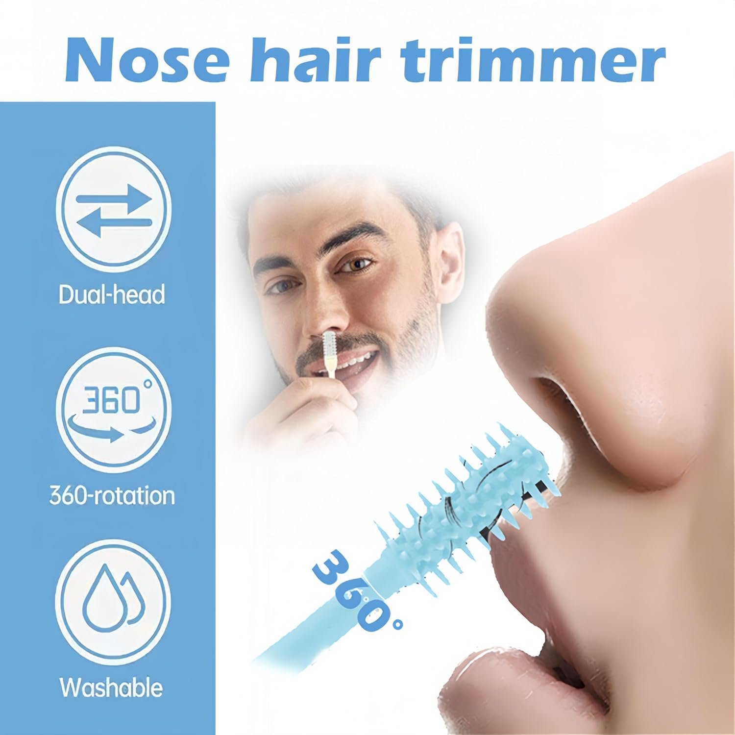 【360° rotation design, safe and convenient】Equipped with a 360° rotating blade, it can safely and easily remove long nose hairs to create a clean and neat style