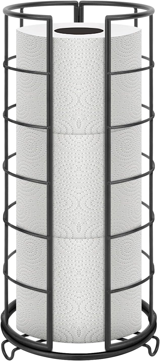 RAISED BASE DESIGN: 3 Raised arc feet at the bottom makes toilet paper organizer stand away from floor, prevent roll paper from being wet and dirty by water or other things. Keep it clean and dry.