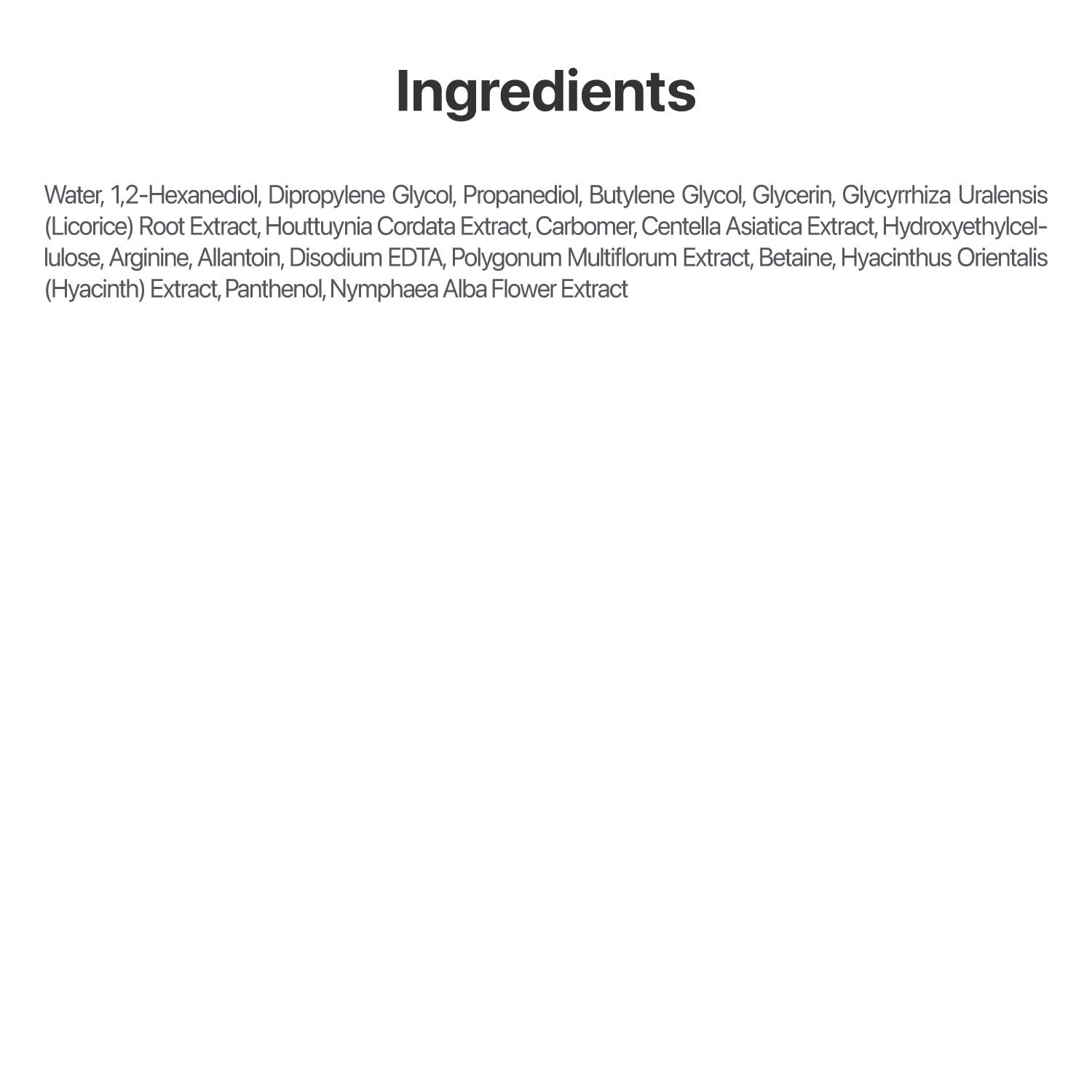 [KEY INGREDIENTS] Infused with centella asiatica and heartleaf extract for their healing properties, heartleaf to calm and balance skin temperature, and licorice root to reduce irritation. Betaine and Panthenol provide added soothing and skin repair properties.