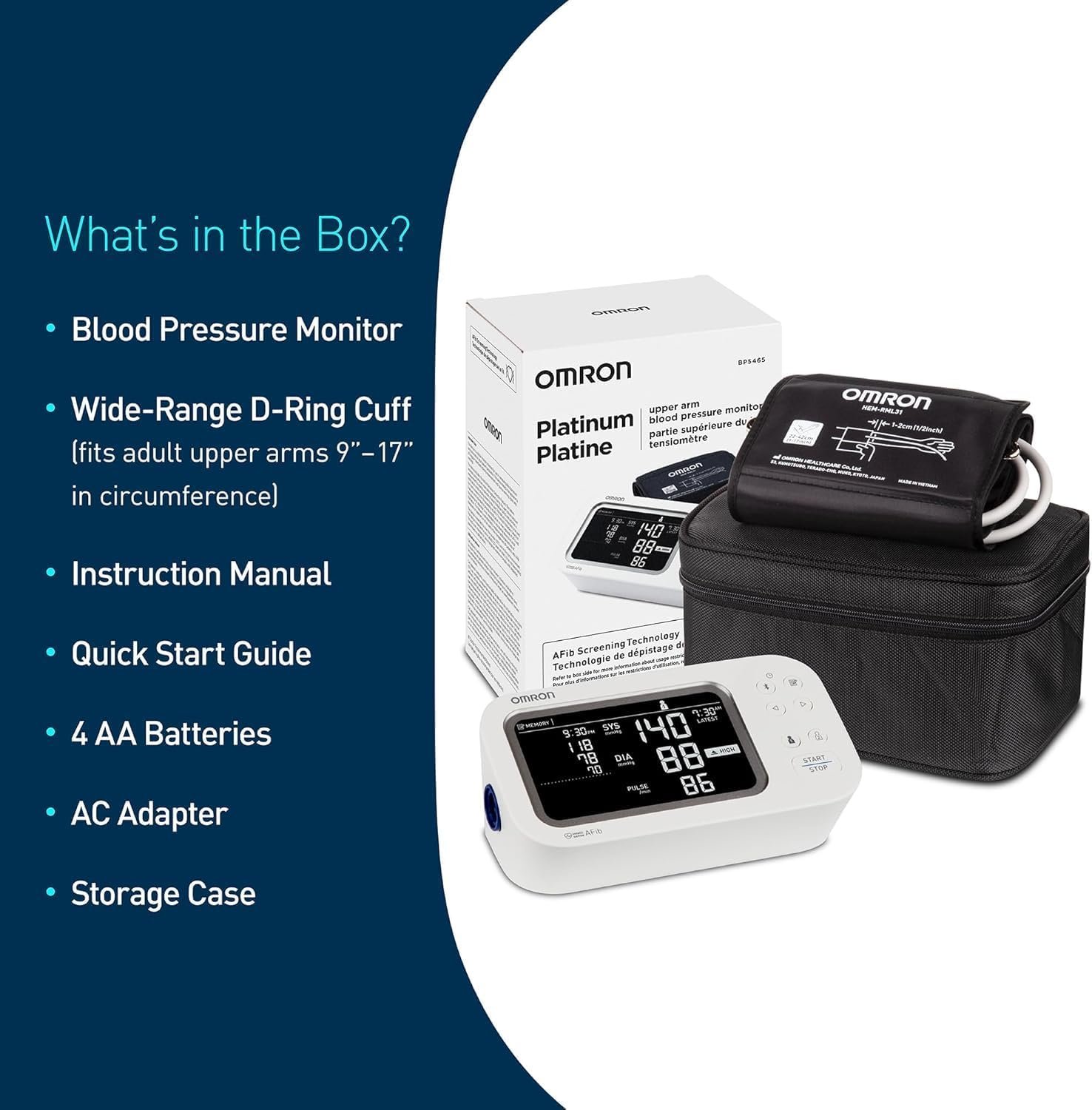 CONFIDENCE IN EVERY READING: Monitor your heart health with the OMRON Platinum Upper Arm Blood Pressure Monitor’s Advanced Accuracy with AFib Detection Technology; Store up to 100 readings each for you and a partner to track progress with dual-user support