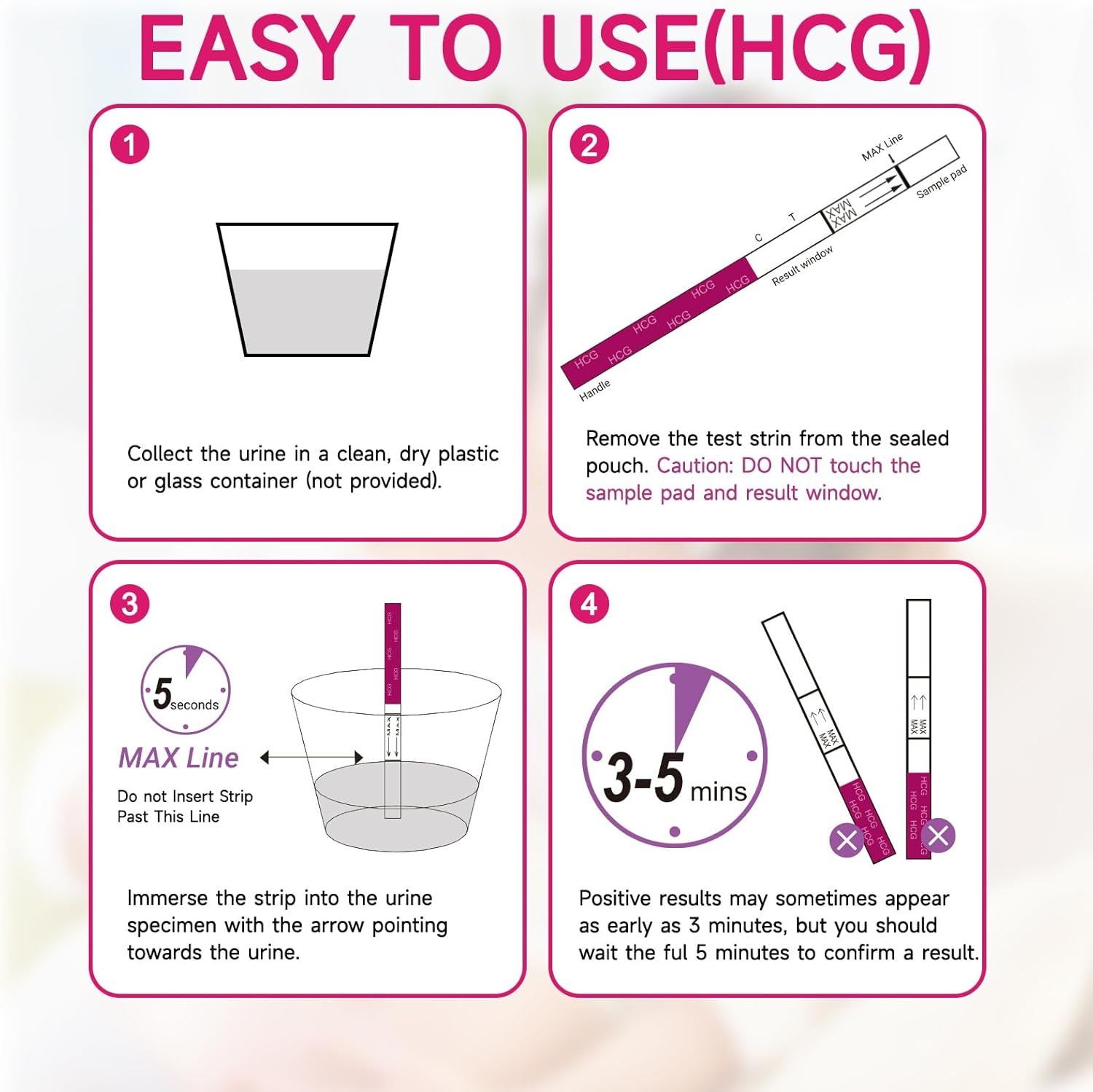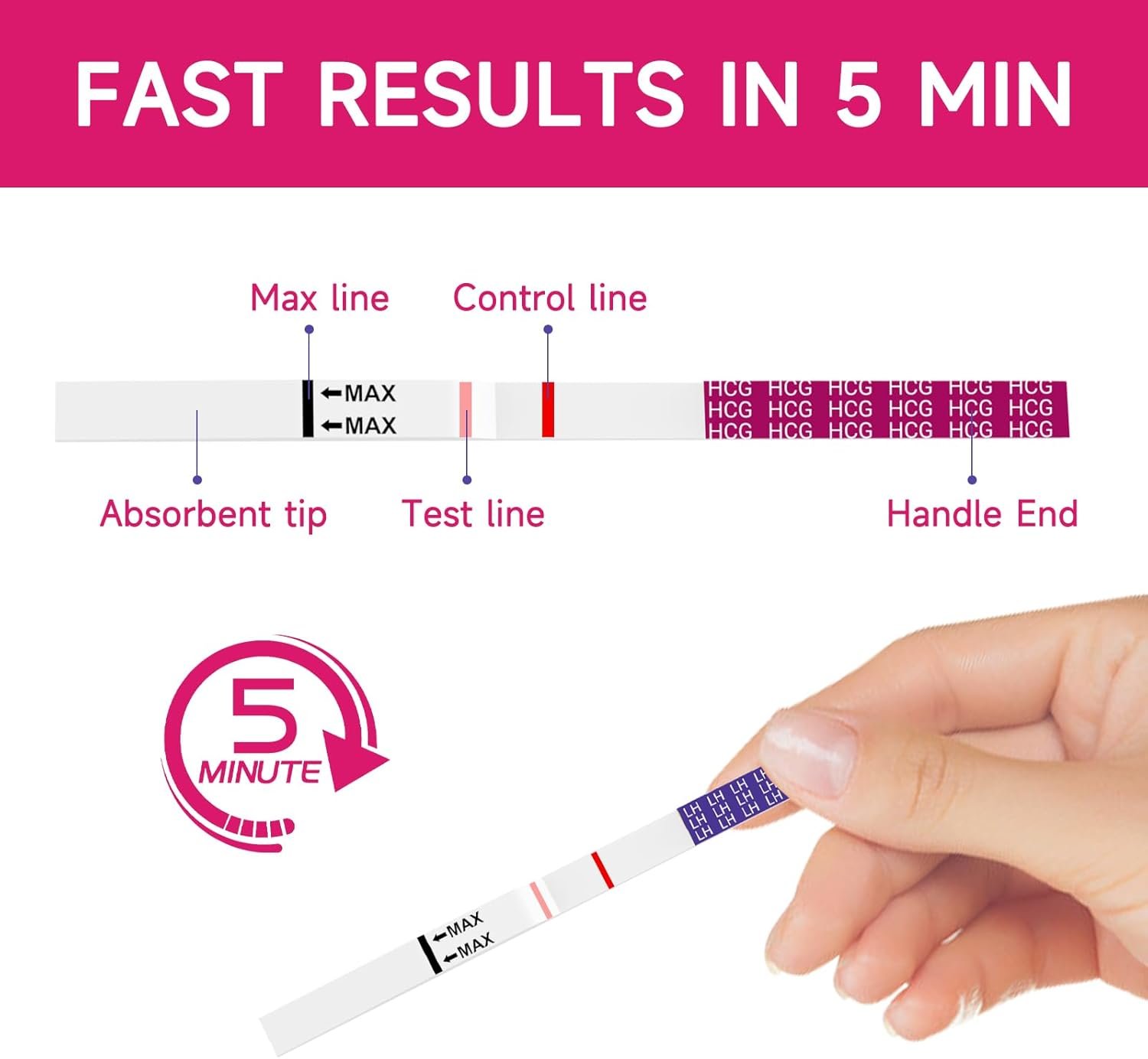 Fast and Clear Results in 3-5 Minutes: Engineered with rapid color development, our ovulation test strips and pregnancy test strips kit deliver unambiguous line results-no ambiguous faint lines or extended waits. Results are easy to read, minimizing confusion and guesswork. Two distinct colored lines on hcg test strips mean get pregnant / on ovulation strips mean LH Surge.