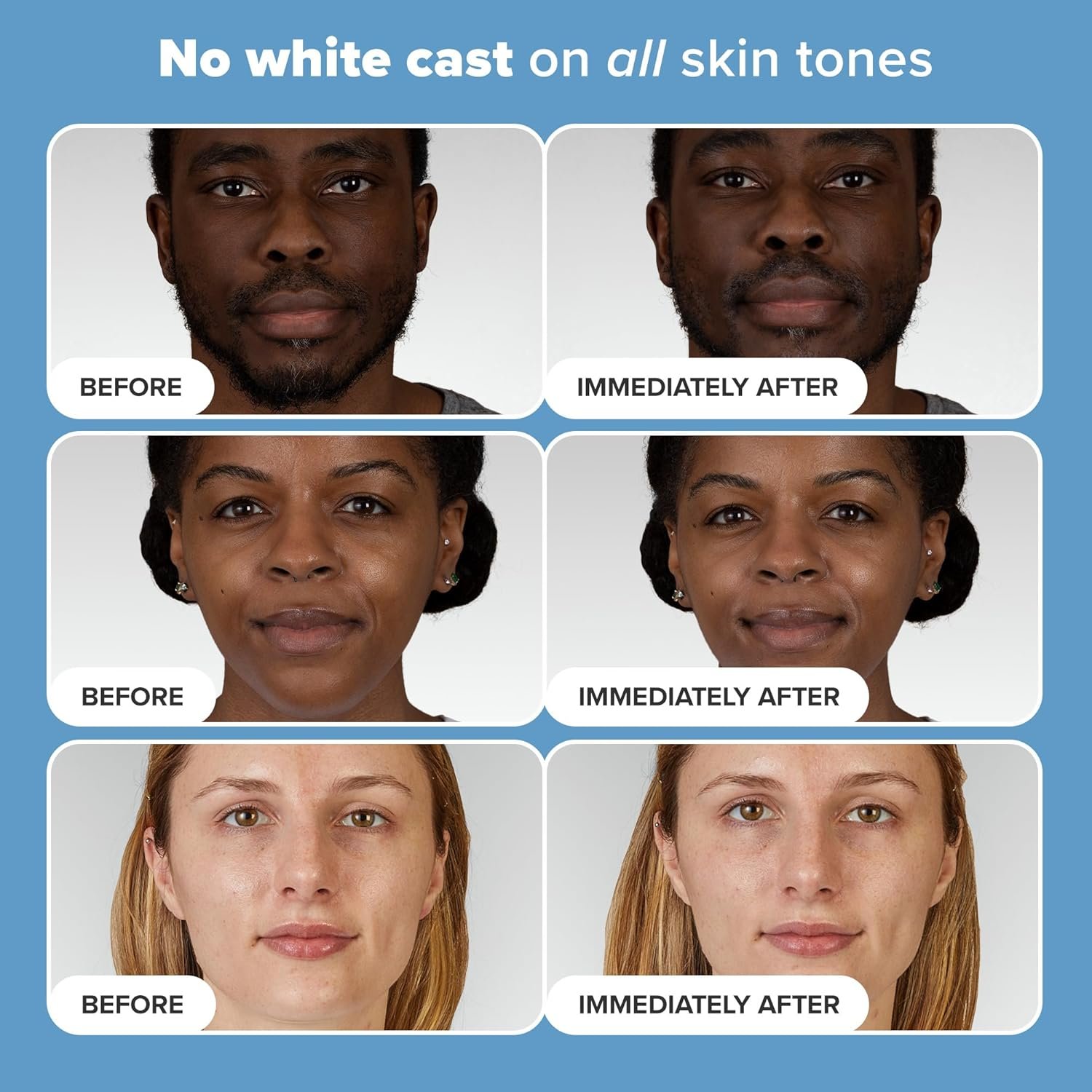 Minimizes pores; evens tone