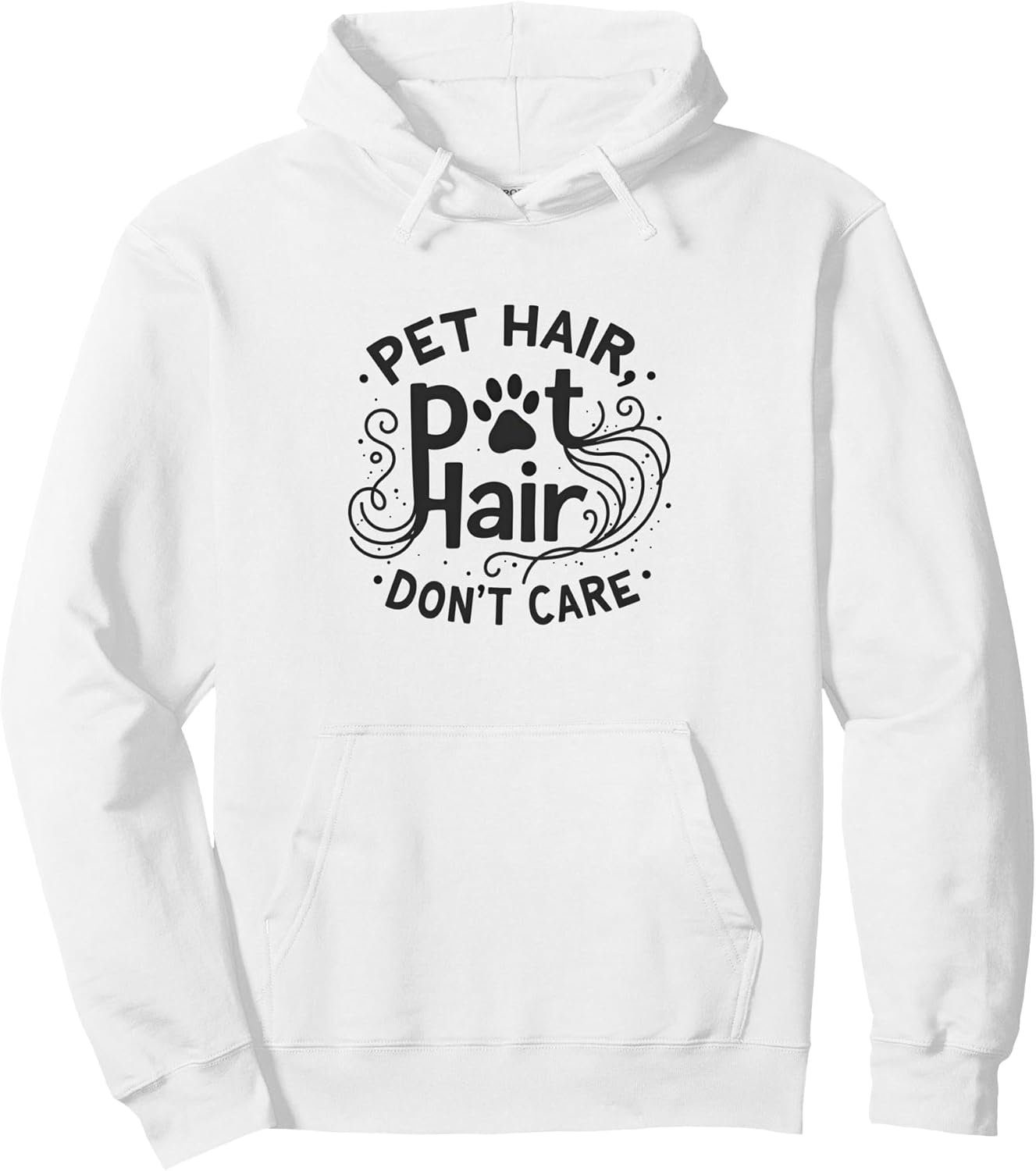 Embrace your love for pets with our charming ‘Pet Hair, Don’t Care’ design! This playful design features bold, stylized lettering that perfectly captures the sentiment of devoted pet owners. The central focus is the word ‘Hair’ with a cute paw print cleverly incorporated as the ‘a’. Surrounding this eye-catching centerpiece are the words ‘PET HAIR’ and ‘DON’T CARE’, emphasizing the wearer’s carefree attitude towards the inevitable fur that comes with pet ownership. Delicate swirls and dots add a whimsical touch, making this shirt a must-have for any animal lover who wears their pet parent status with pride. Whether you’re a dog person, cat enthusiast, or love all furry friends, this shirt is the perfect way to show your dedication to your pets and your laid-back approach to the ‘hairy’ situations they create!