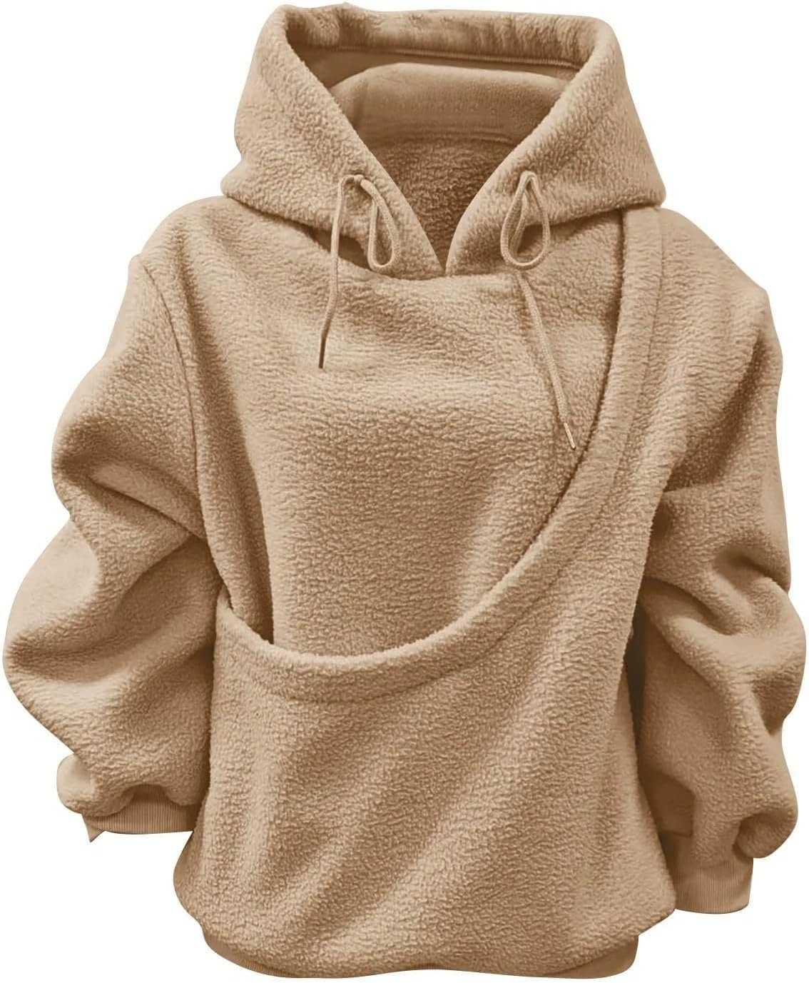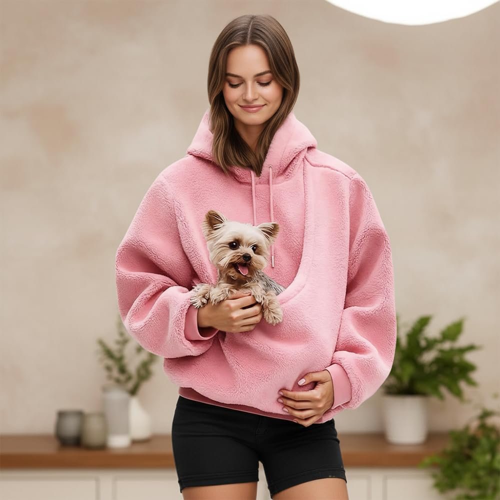 This fleece pet pouch hoodie is designed for relaxed indoor moments with small cats or dogs. Made from a soft fleece blend, it offers warmth and comfort during fall and winter seasons.