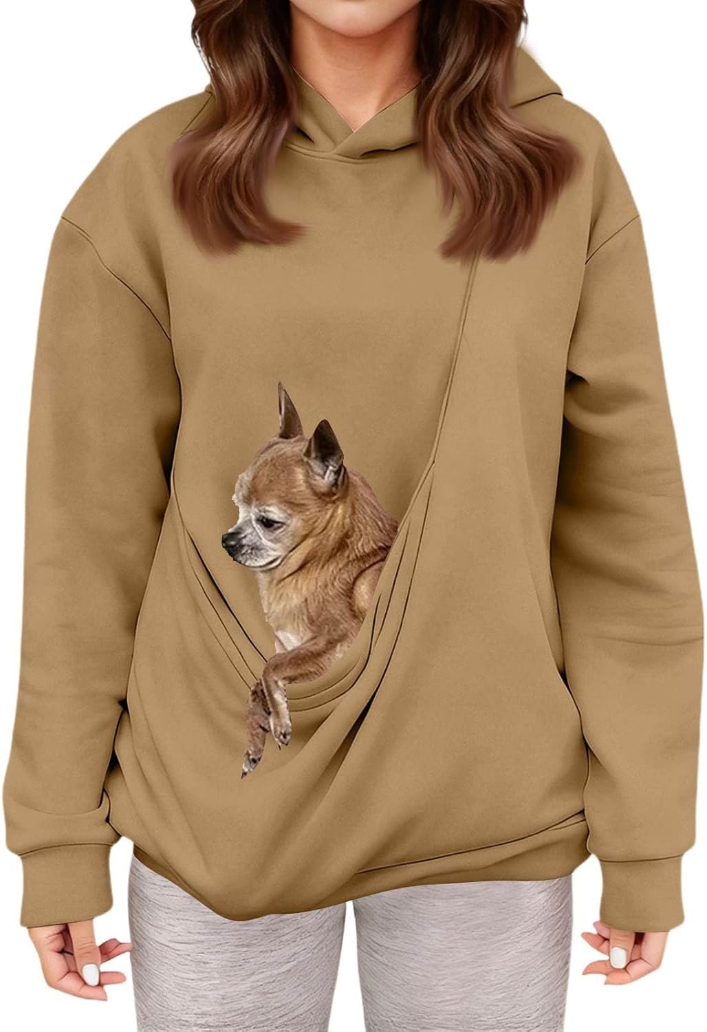 Pet Pouch Hoodie for Women Comfort Fleece Pullover Hoodies Casual Oversized Hoodie with Dog Pouch Hooded Sweatshirt
