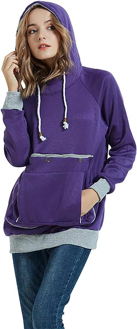 Kei Tomlison Pet Pouch Hoodie Long Sleeve Fleece Kitten Puppy Holder Carrier Sweatshirt for WomenTips: Size runs small, kindly please go one or two sizes upClosure Type: Pull on closureOccasion: Casual ,everyday, go out for walk with your pets, a nice pullover sweater shirtColor: Light Gray, Blue, Navy blue, Purple,Light Blue