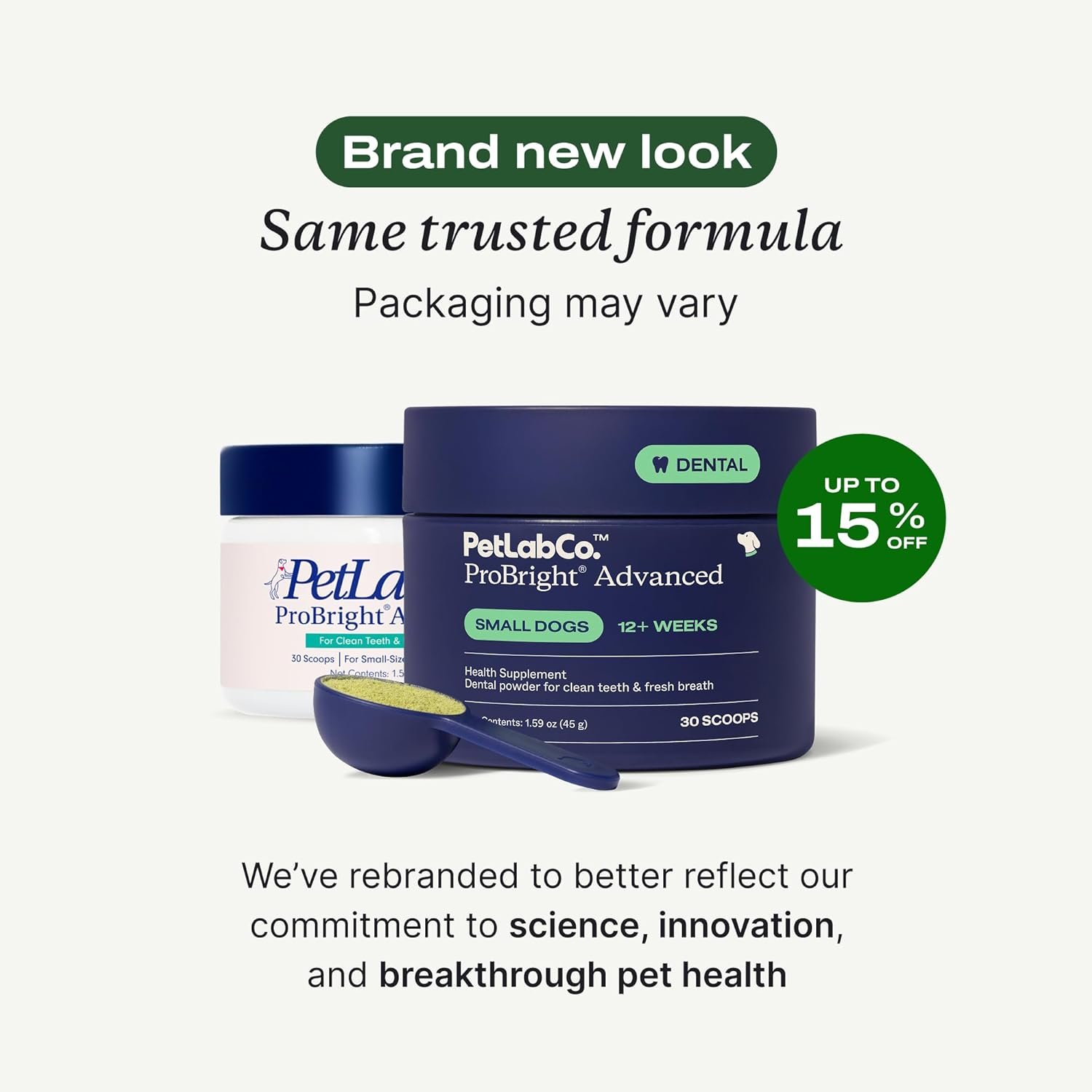 PetLab Co. ProBright Advanced Dental Powder – Dog Breath Freshener – Teeth Cleaning Made Easy – Targets Tartar & Bad Breath – Packaging May Vary – Formulated for Small Dogs