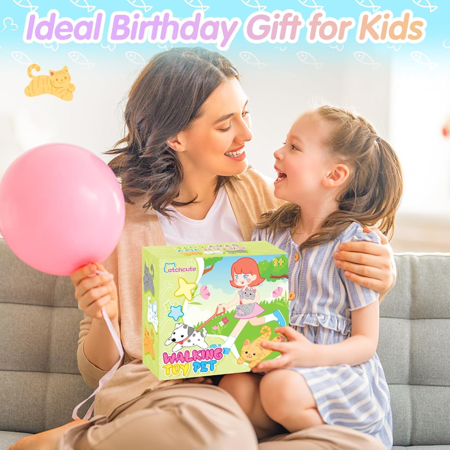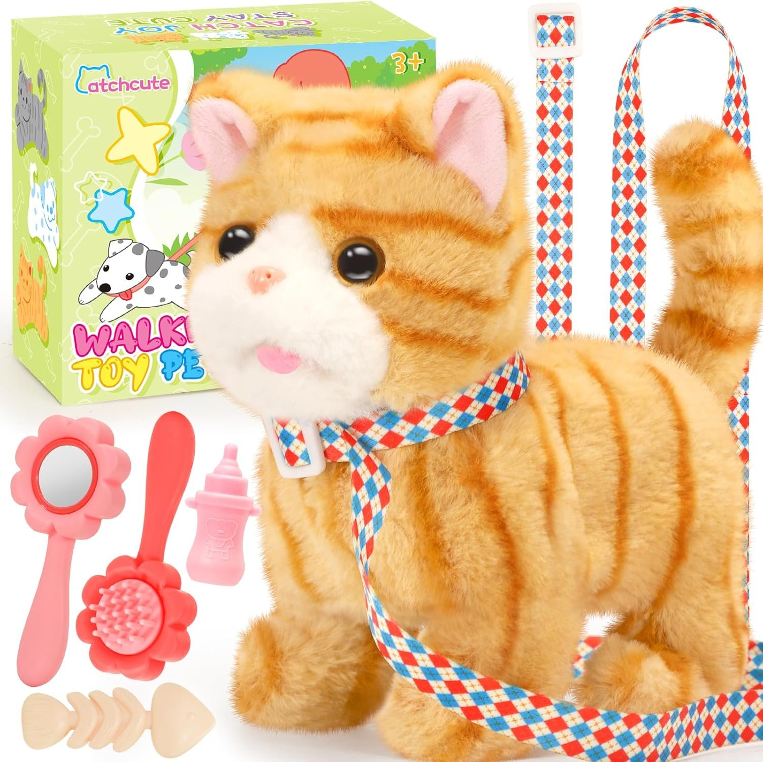 Plush Toys Cat for Kids with Leash, Interactive Electronic Kitty That Walking,Meowing, and Tail Wagging, Stuffed Cat Christmas Birthday Gift for Boys and Girls