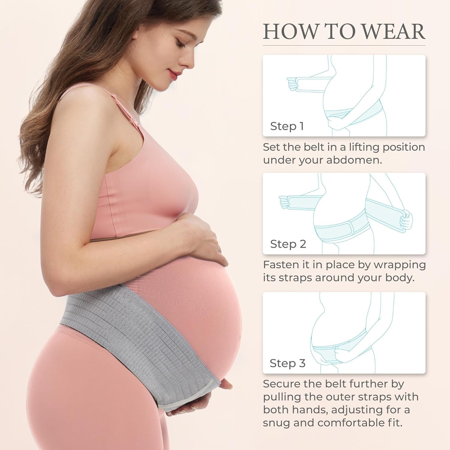 Adjustable & Stretchable Maternity Belt:Fully adjustable to accommodate your shape and growing belly with hook and loop closure throughout pregnancy, this belt braces your back and eases pressure. Easy to put on and adjust, it ensures a perfect fit and compression. Supporting your waist, abdomen, and back, it provides stability during movement and aids in maintaining good posture for long-lasting pregnancy comfort and support