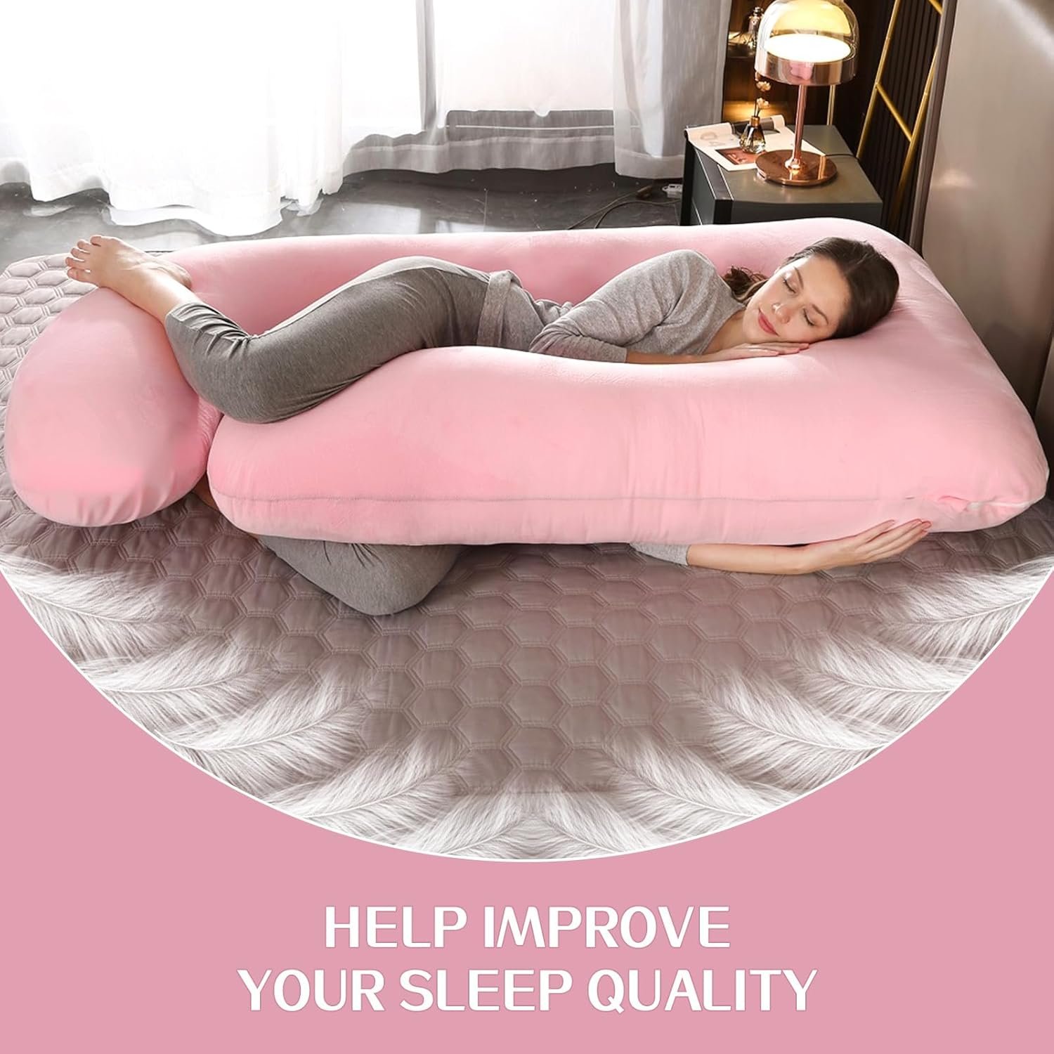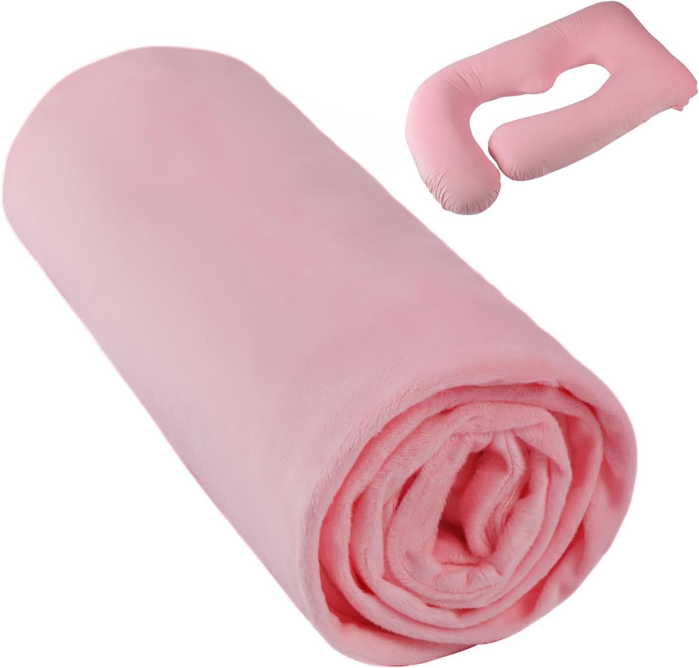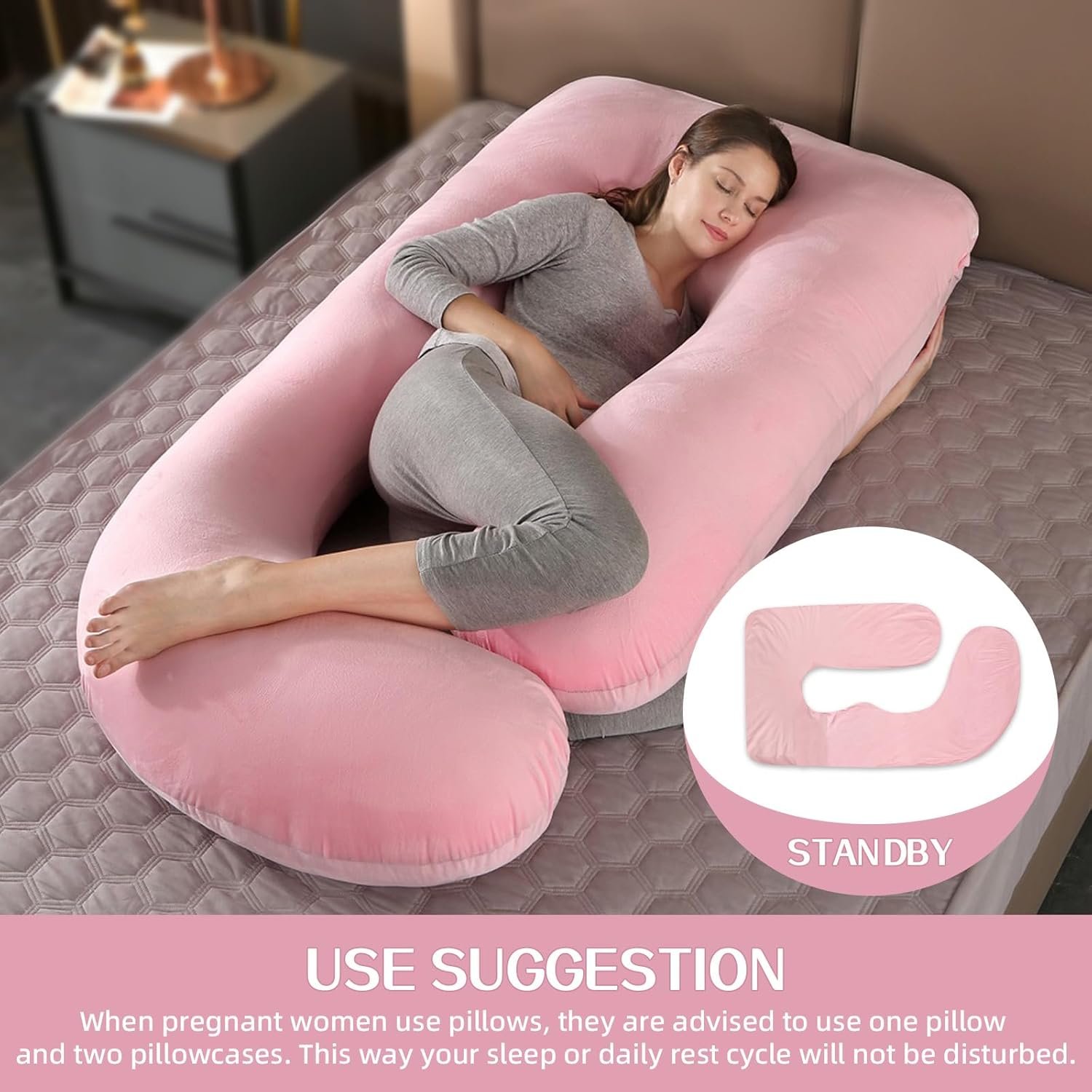 Pregnancy Pillow Cover u Shaped, 57 “x 28” Pregnant Woman Replacement Pillowcase, Velvet Replacement Pillowcase, Double Zipper Cotton Fabric, Super Soft (Pink-Only Pillowcases)