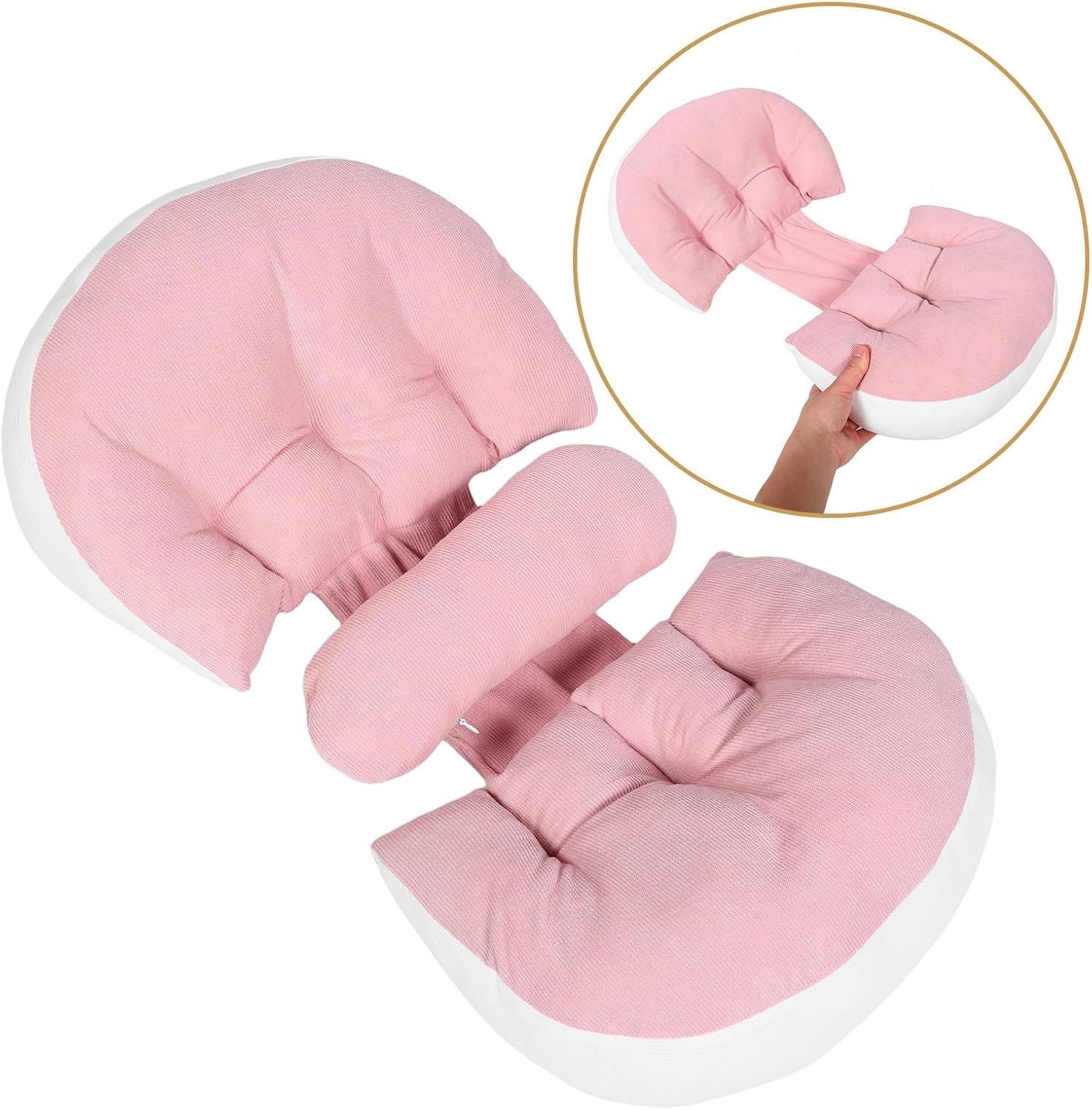 Pregnancy Support Pillow U Shaped Maternity Body Pillow for Side Sleeping with Waist and Belly Support Soft Pink Cover for Stomach Sleepers