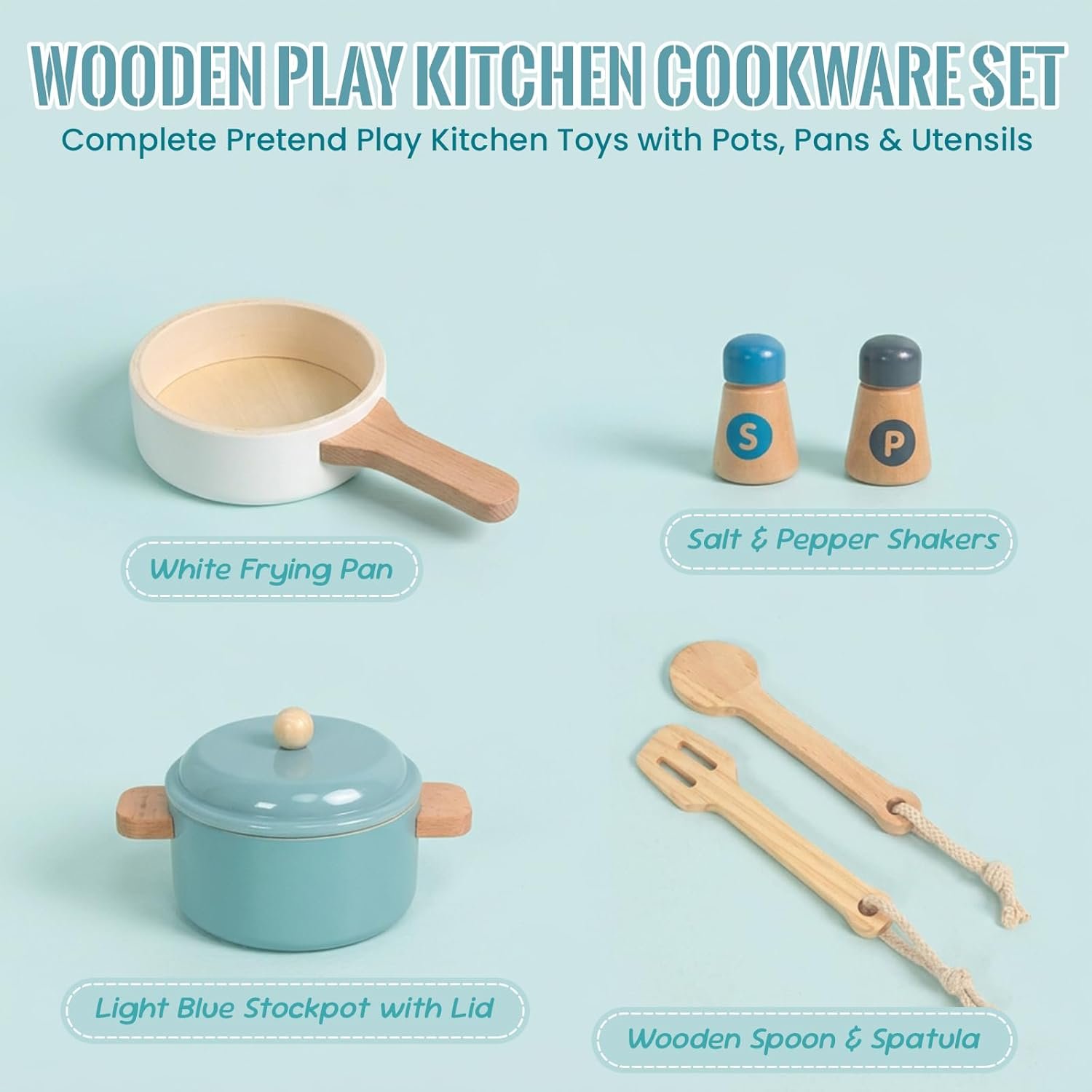 Premium Toddler Play Kitchen Toys, Wooden Kitchen Utensils, Accessories for Pretend Play Kitchen Set, Montessori Learning Toy, Pretend Cooking Playset, Gift for 3+