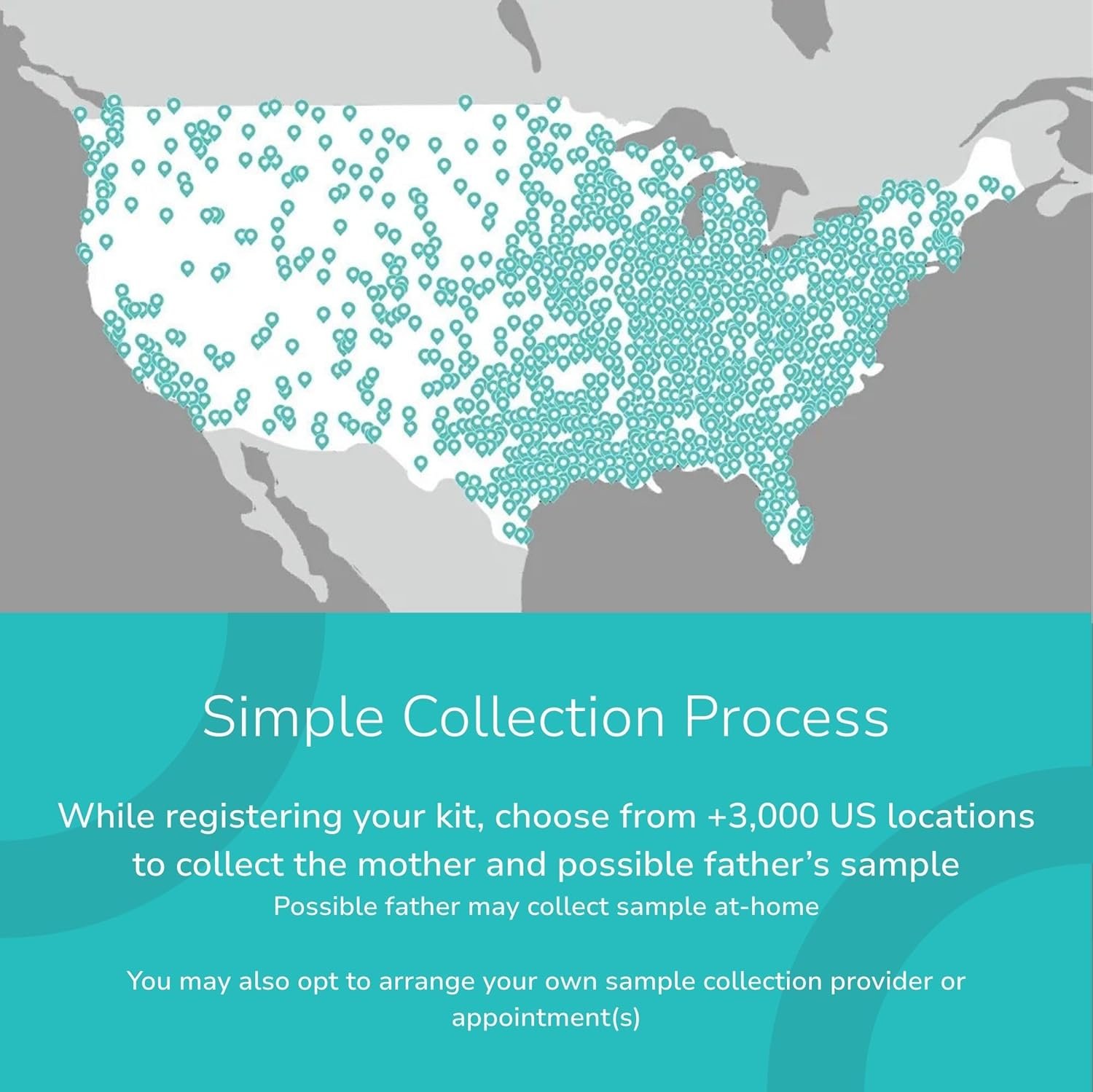 Order, register, and pick a time and local center to collect the mother’s sample. Choose from over 3,000 locations or use your own provider.