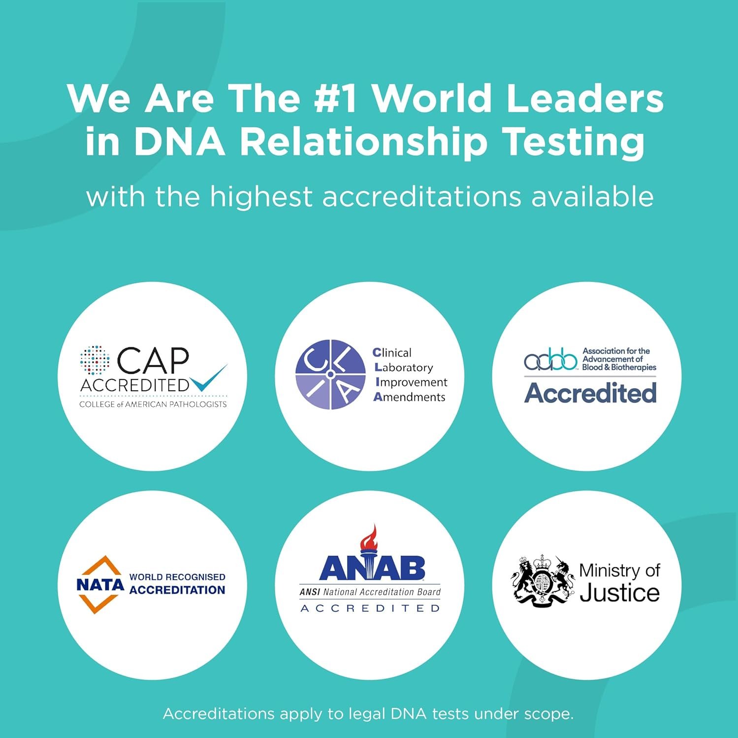 Our lab that meets high-quality standards through multiple accreditations, including AABB, ISO, CAP and CLIA, for testing under scope. This level of oversight is not available from all labs.