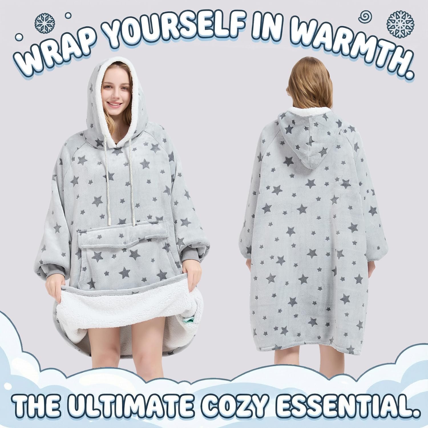 Supreme Warmth & Dual-Layer Comfort: Crafted with premium Sherpa fleece interior and flannel exterior, our wearable blanket delivers full-body warmth for sub-zero climates. The hooded design with elastic cuffs locks heat while allowing free movement—perfect for icy mornings, camping trips, or cozy movie nights.
