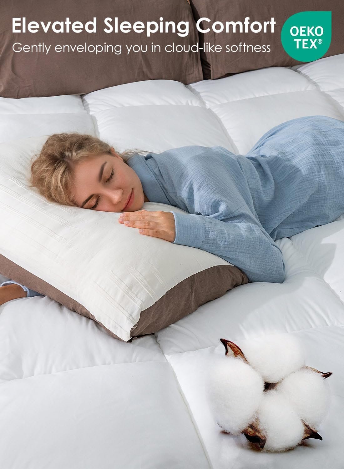 Unmatched Softness: Indulge in sleeping on clouds feel with extra thick snow down alternative filling, which creates a soft and cozy surface that relaxes your body, alleviates pressure points, particularly on back, shoulders, and hips. Enjoy a more restful sleep with significantly improved sleep quality