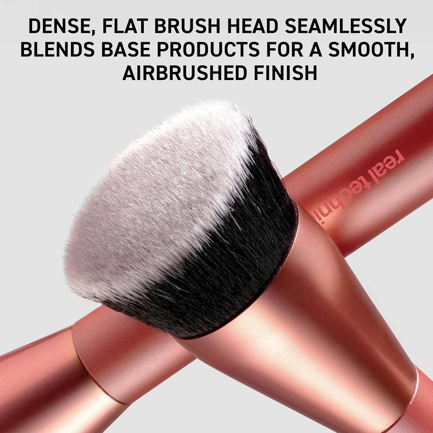 The Real Techniques Glow Round Base Makeup Brush features a round, flat-top head to easily buff and blend foundation for a smooth, airbrushed base. The 259 makeup brush’s dense, flat top buffs over a large surface area and blends out hard-to-reach spots of the face and neck. Our foundation brush is best used with liquid and cream foundations or primers for a full coverage look. With maximum pickup, precision application, and targeted shapes – this triple threat design will level up your daily routine. The base brush features a NEW custom-cut round head shape with a flatop and UltraPlush, high quality, dense bristles for maximum pickup and laydown. To make your tools last longer, it is recommended to clean you brushes once a week using the Real Techniques Brush + Sponge Cleansing Gel. As with all our RT products, this makeup brush is 100% vegan and cruelty-free. We are Real Techniques, the brand of choice for all makeup users, no matter your level of expertise. Created in collaboration with leading makeup artists, we aspire to take the mystery out of choosing beauty tools so you can focus more time on putting your best face forward one blend at a time. From full makeup looks, to quick beauty hacks, RT brushes + sponges are exceptionally high quality for professional looking results every time. BUT… don’t be fooled by our affordable prices, RT tools are award-winning + purposefully designed because that’s what you deserve. Quality without compromise.