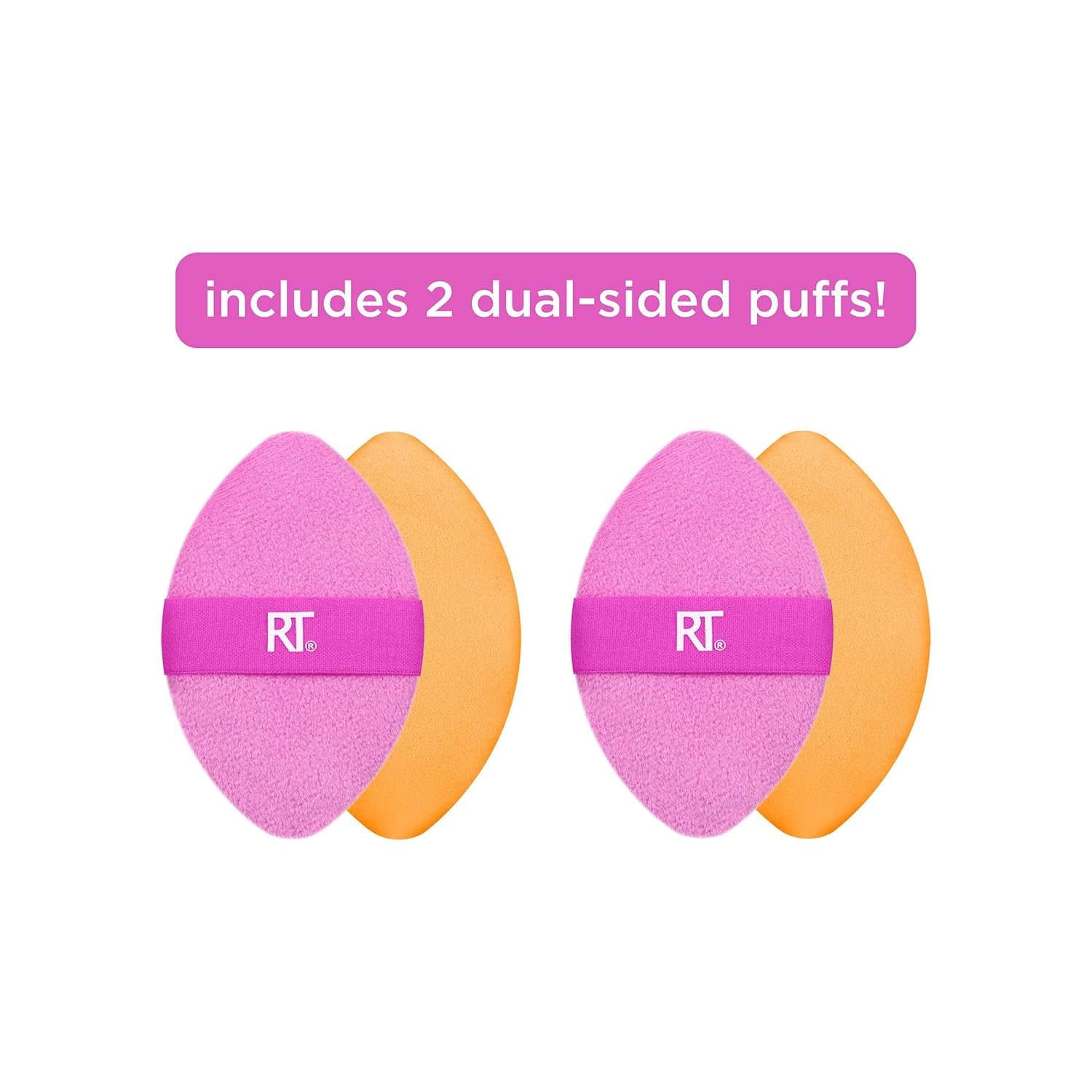Includes: (2) Real Techniques Miracle 2-In-1 makeup puffs that are dual-sided to help you achieve a soft, airbrushed finish when setting your base and touching up makeup. Pack size provides easy replacement or makes for the perfect gift