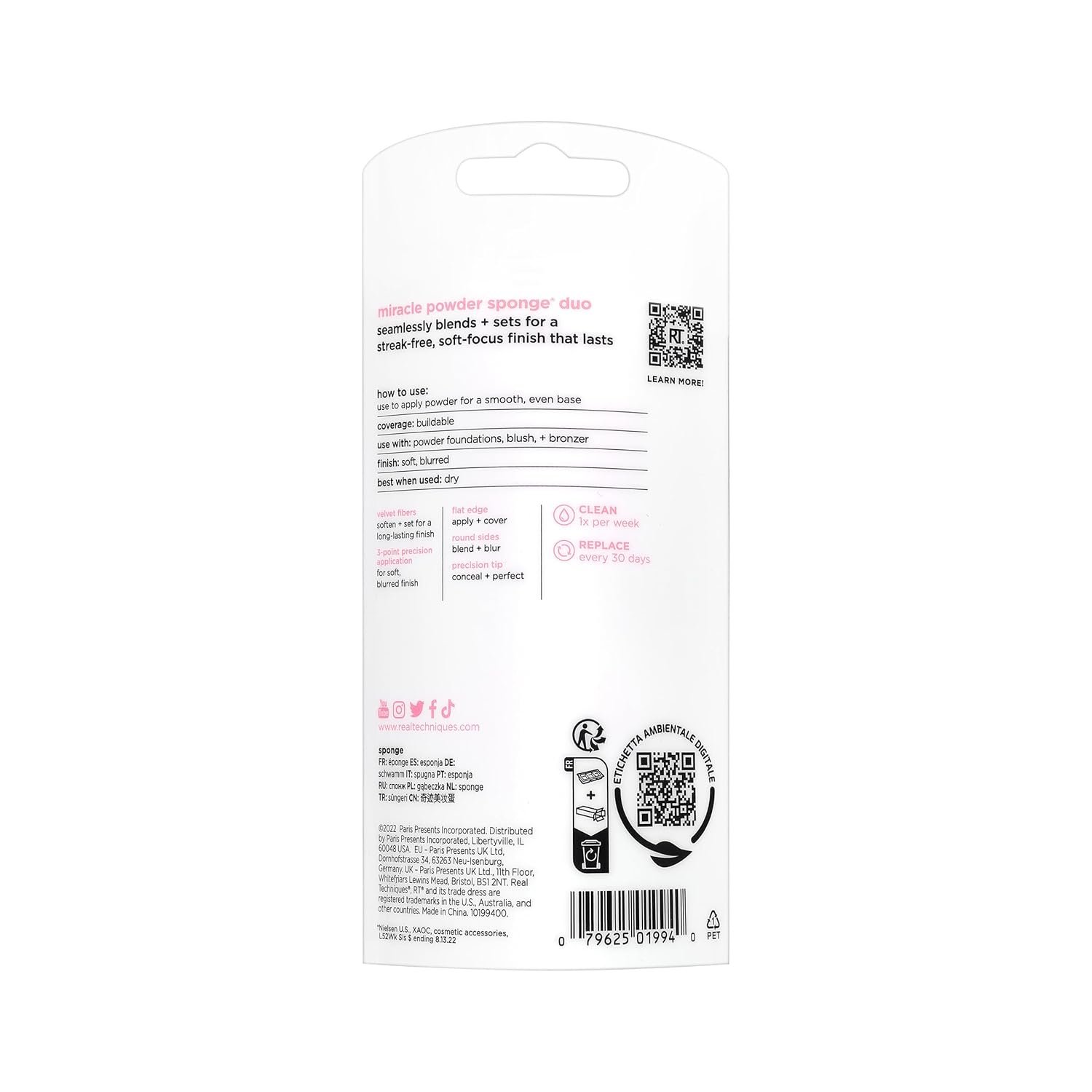 The Real Techniques Miracle Powder Sponge seamlessly blends and sets for a soft-focus finish that lasts. Our powder makeup sponge offers buildable coverage and is made with velvet fibers that help give you a soft, blurred finish on the skin. Real Technique’s MPS works best with powder foundations, blushes, and bronzers. This makeup sponge has RT’s unique 3-point application technique that makes blending products seamless. First use the flat edge of the MPS to pack on product, then the precision tip to conceal, and finally, blend it all out with the rounded side. Our powder sponge can be used both damp and dry depending on the look you’re aiming to achieve. The Miracle Powder Sponge is easy to clean using our Real Techniques Brush + Sponge Cleansing Gel. It’s also 100% cruelty-free, vegan, and designed with revolutionary latex-free foam technology. We are Real Techniques, the brand of choice for all makeup users, no matter your level of expertise. Created in collaboration with leading makeup artists, we aspire to take the mystery out of choosing beauty tools so you can focus more time on putting your best face forward one blend at a time. From full makeup looks, to quick beauty hacks, RT brushes + sponges are exceptionally high quality for professional looking results every time. BUT… don’t be fooled by our affordable prices, RT tools are award-winning + purposefully designed because that’s what you deserve. Quality without compromise.