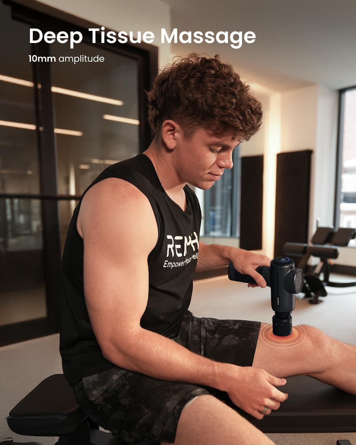 The video showcases the product in use.The video guides you through product setup.The video compares multiple products.The video shows the product being unpacked. RENPHO Massage Gun with Heat and Cold Merchant Video